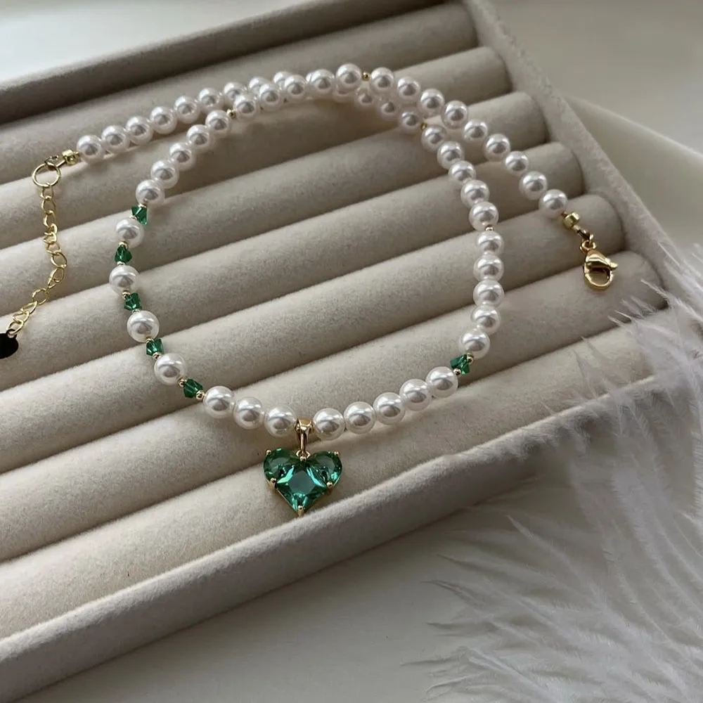 Tendance élégante plage bijoux mariage grande Imitation perle collier ras du cou pour les femmes mode cristal coeur pendentif collier