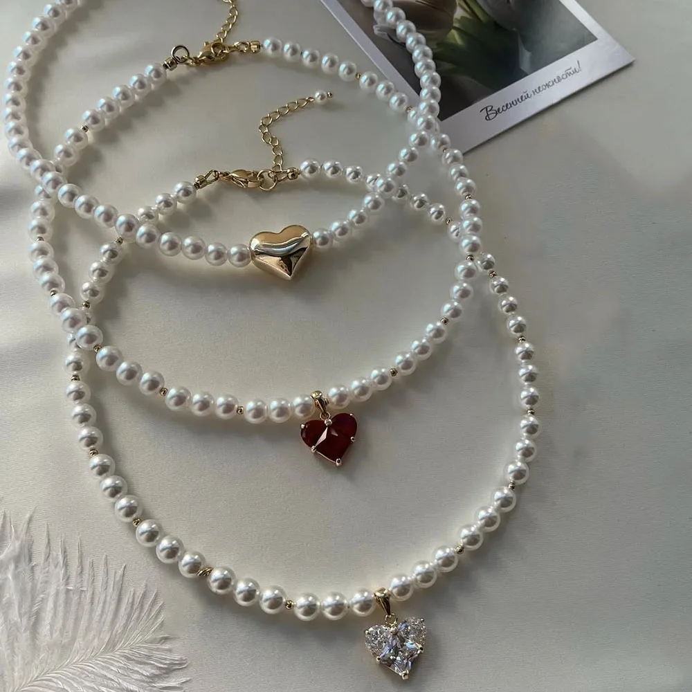 Tendance élégante plage bijoux mariage grande Imitation perle collier ras du cou pour les femmes mode cristal coeur pendentif collier |