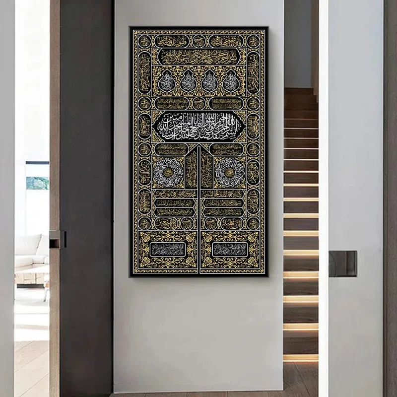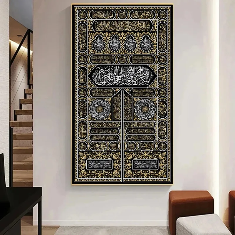 Texte arabe Mecque calligraphie toile peintures or coran islamique affiche impression photo mur Art maison mur affiche décor Cuadros |