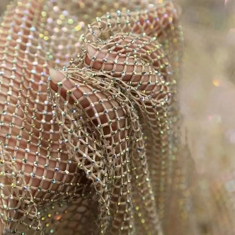 Tissu de luxe en maille de diamant élastique, couleur AB, brillant, cousu avec ceinture en Satin, tissu en dentelle, bricolage pour vêtements et robes, tissus haut de gamme |