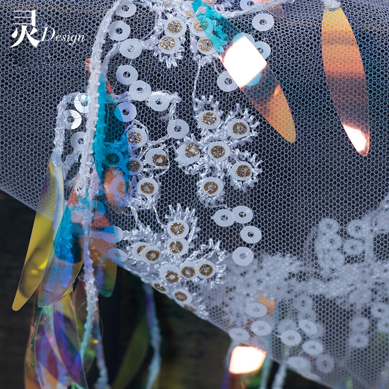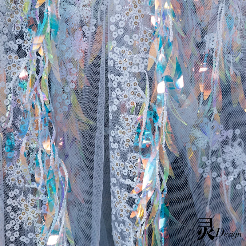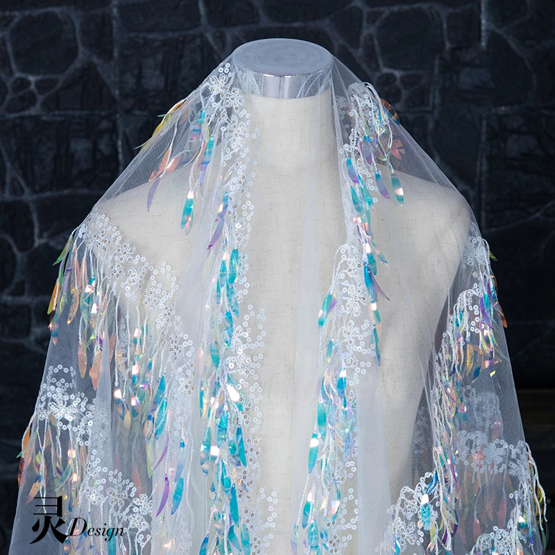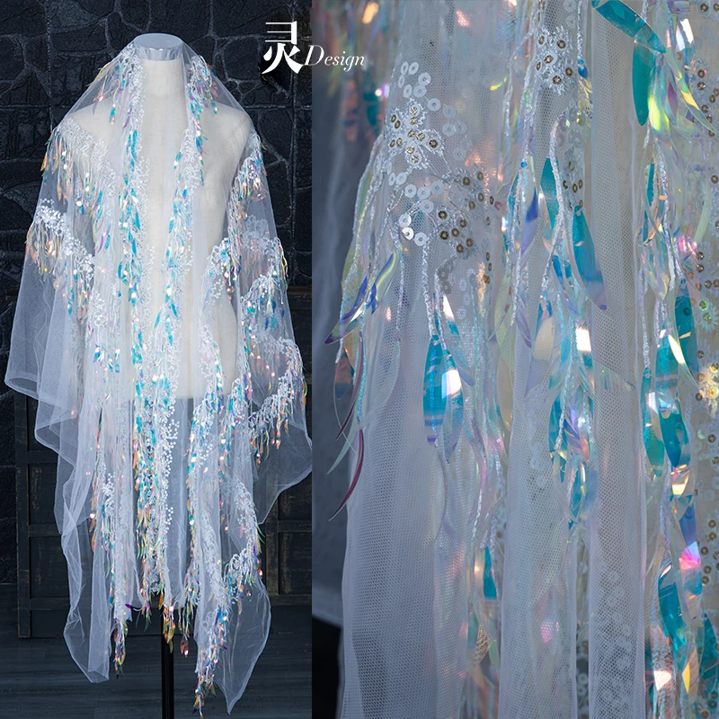 Tissu en maille jacquard à paillettes, tissu brodé nickel é pour robe, vêtements, décoration de rideau, matériel de couture bricolage, grill |