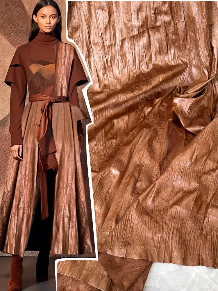 Tissu plissé irrégulier couleur café marron, pour design créatif rétro mode vêtements bricolage tissu à coudre au mètre matériel |