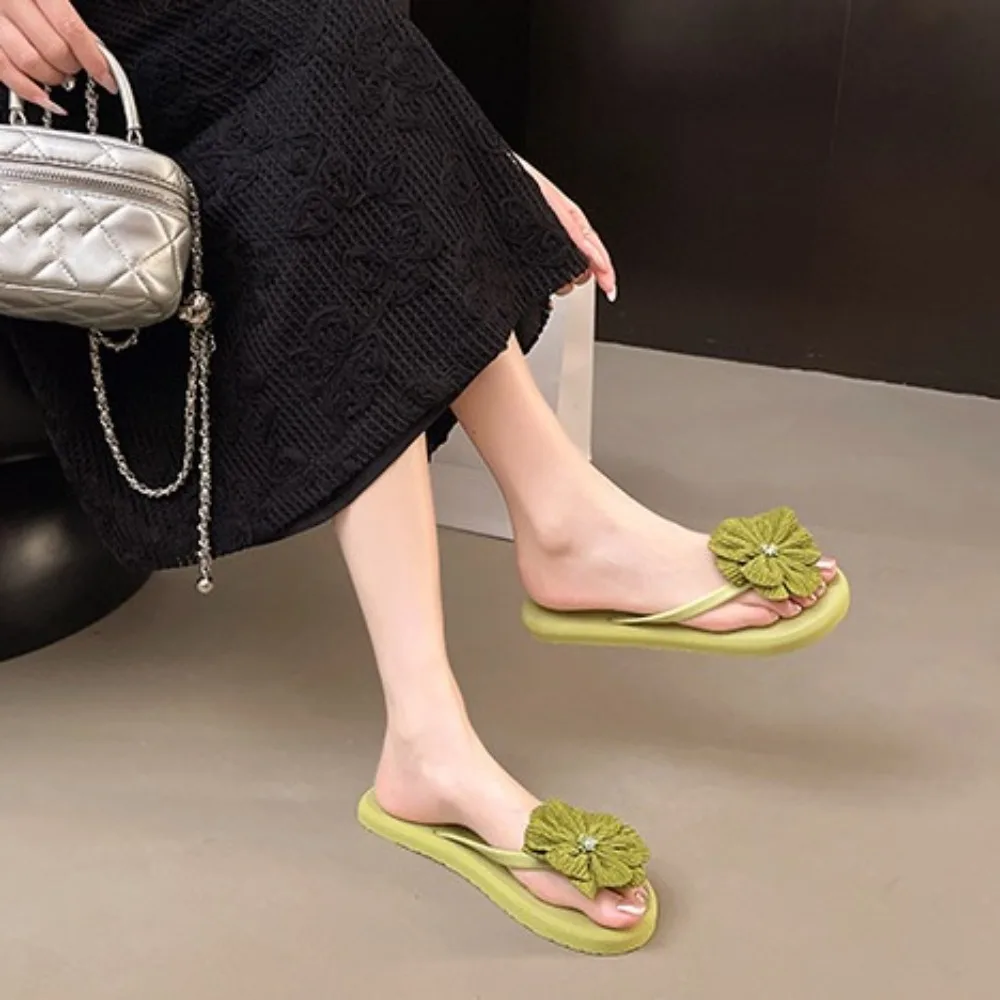 Tongs à fleurs douces, pantoufles antidérapantes à semelles plates, chaussures d’extérieur, vêtements de plage, sandales de plage
