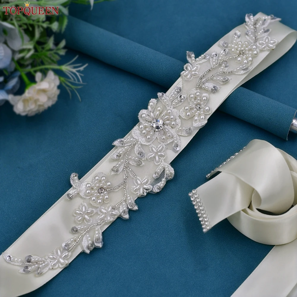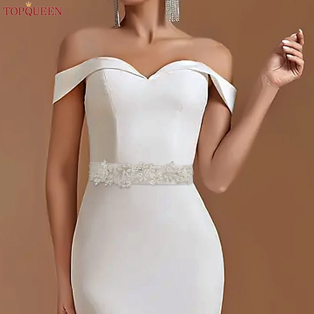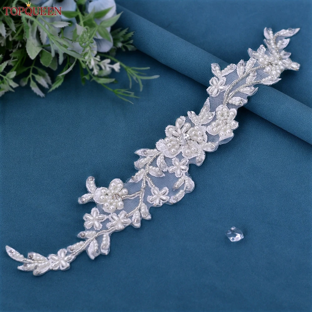 TOPCLS EEN-Ceinture de Patients Fleur de Perle, Ceinture Large ALTERWide Faite à la Main, Décoration de Robe de Mariage Bohème, Applique Perlée, S46