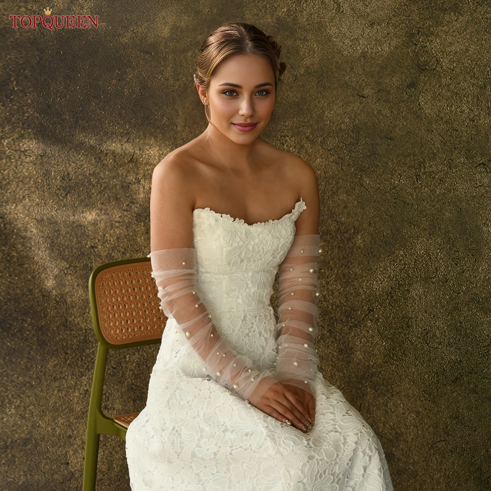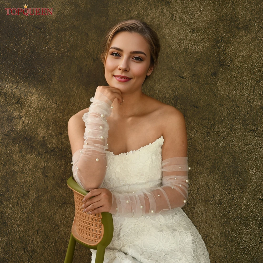 TOPQUEEN Vm16 gants de mariée élégants en perles 1 paire de gants de mariage longueur du coude accessoires de mariage femmes gants de bricolage de mariée |