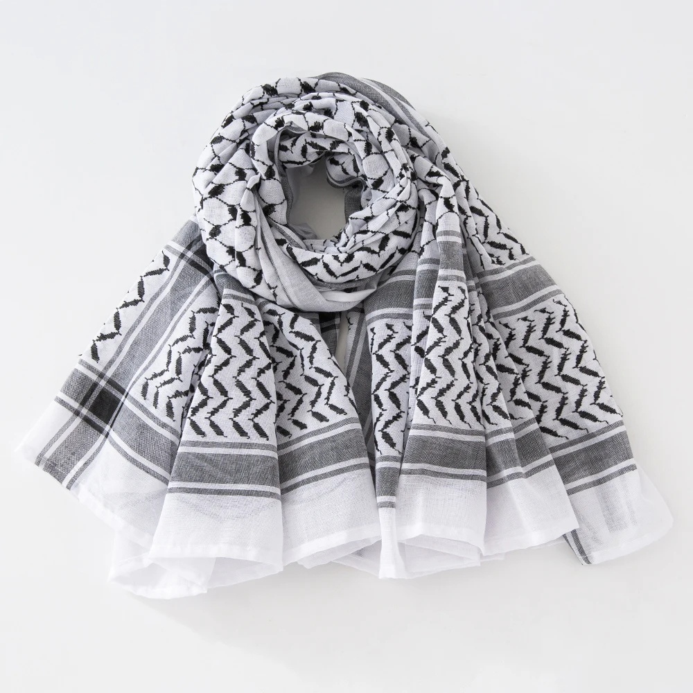 Traditionnel Arafat Kuffiyeh palestinien noir et blanc arabe Kafiya Shemagh Keffiyeh moyen-orient écharpe enveloppement Jacquard bandeau |
