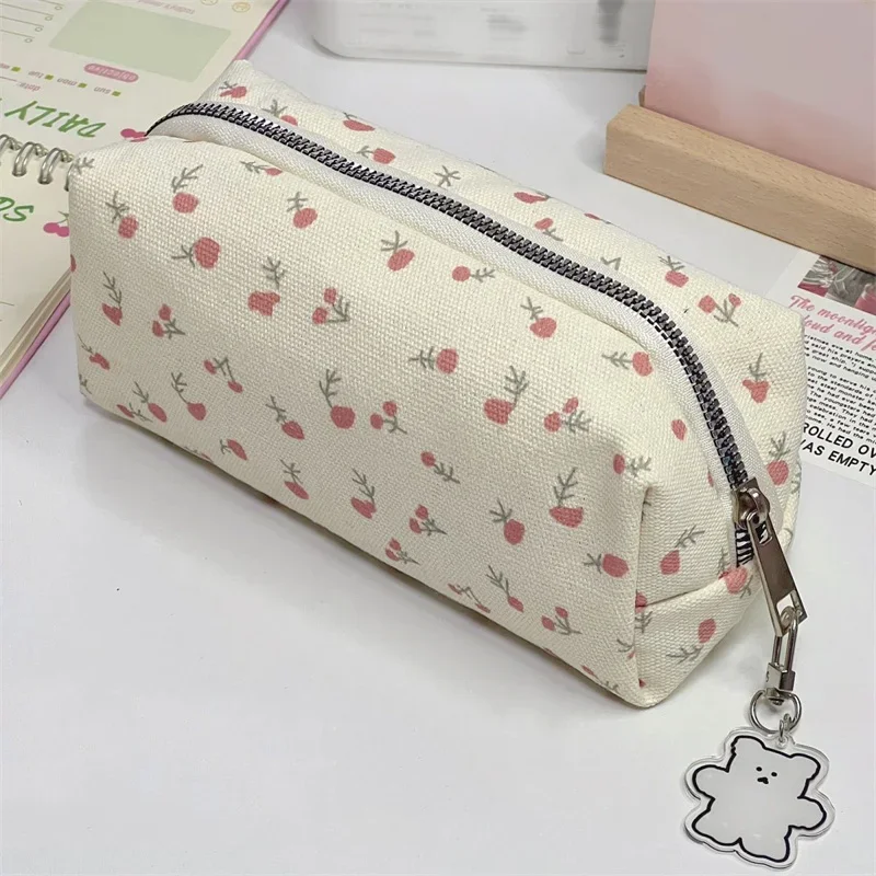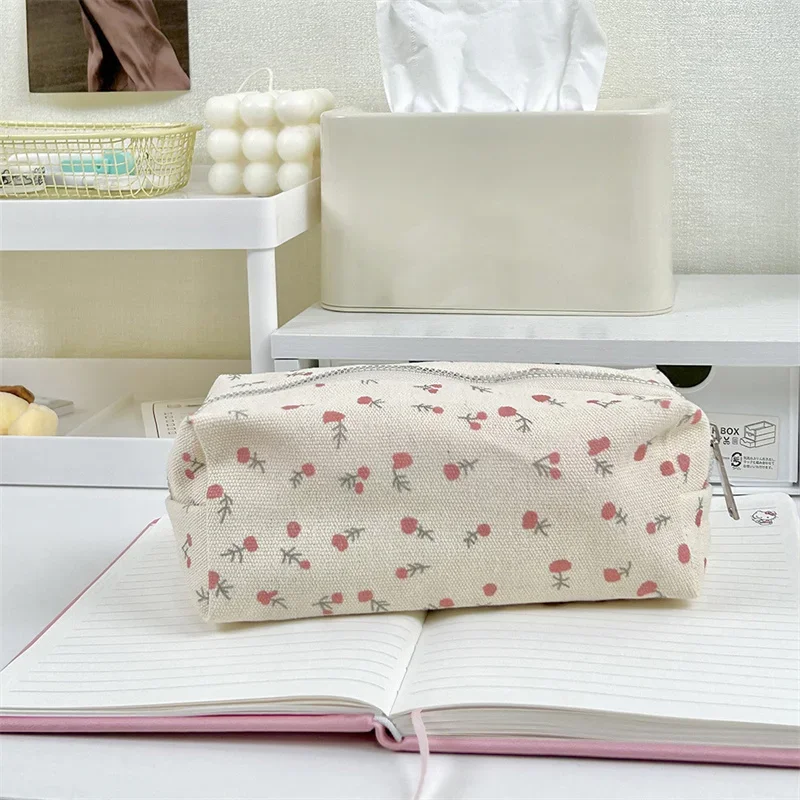 Trousse à crayons florale Chic pour étudiantes, sac à crayons esthétique à fleurs, sac de rangement de papeterie de grande capacité, fournitures scolaires |