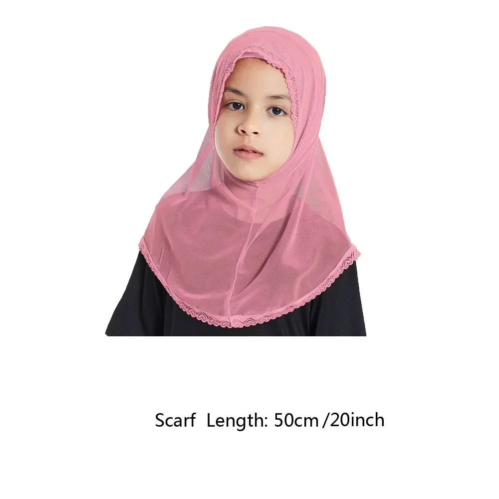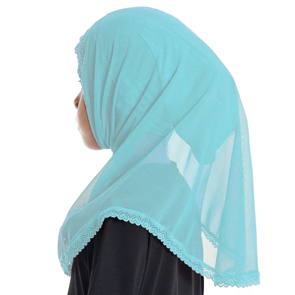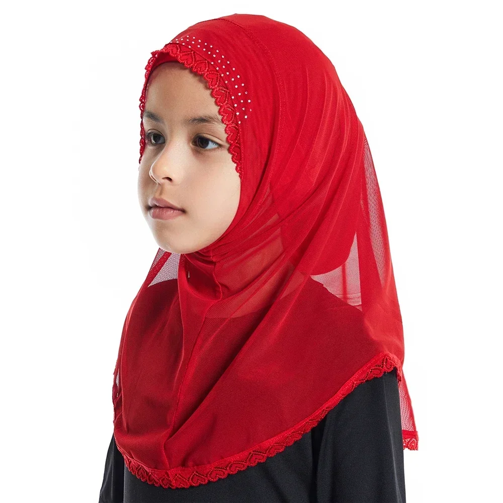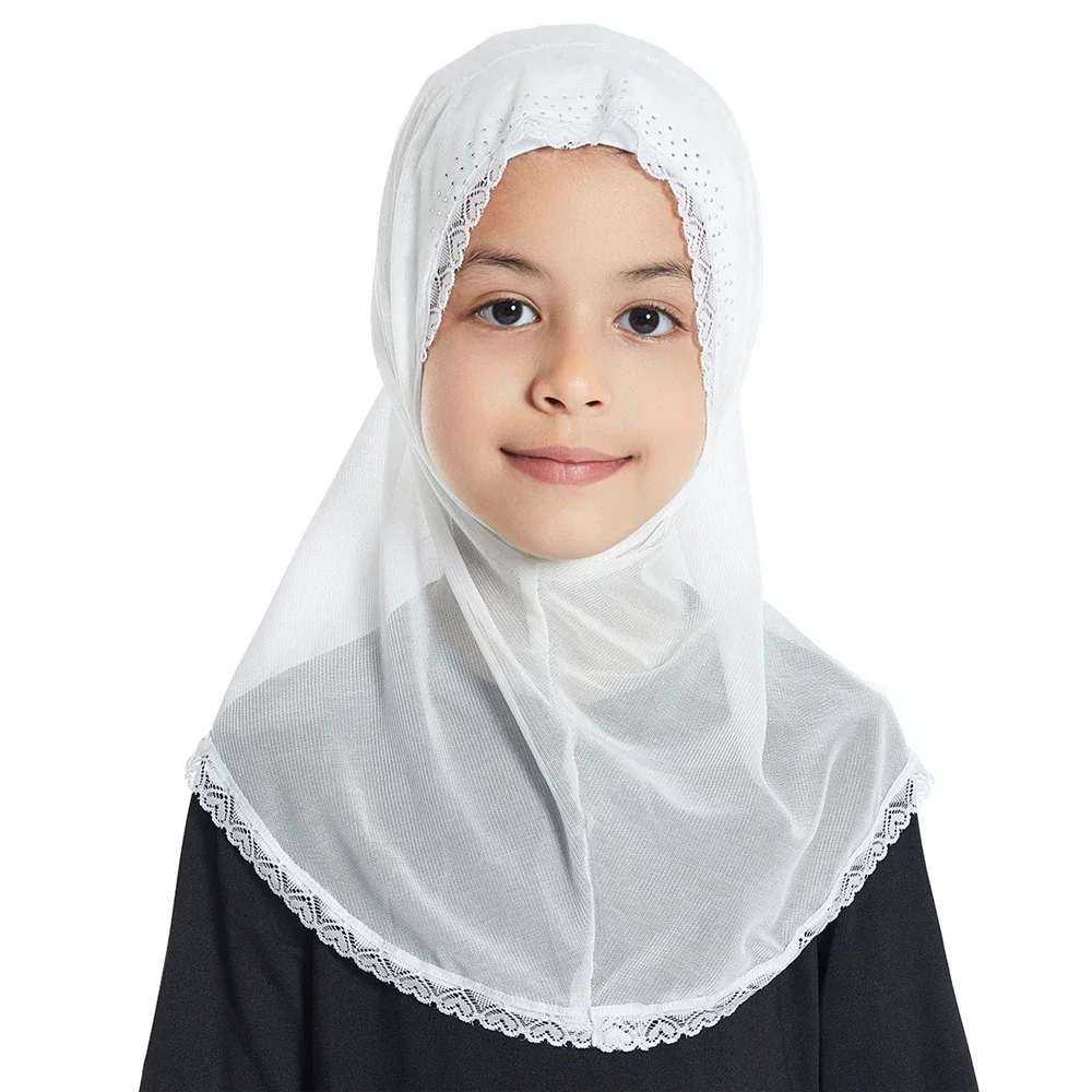 Turban en dentelle avec biscuits pour filles musulmanes, casquettes Hijab pour enfants, une pièce, écharpe islamique Amira, châles sous écharpe, vêtements de sauna, chapeaux ronds, convient aux filles de 2 à 6 ans |