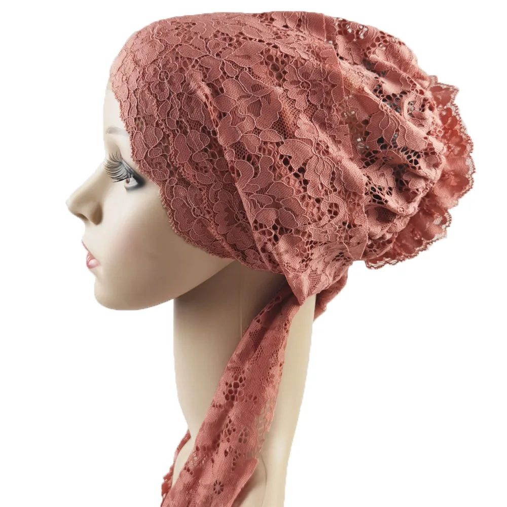 Turban en dentelle florale pour femmes musulmanes, bonnets arabes islamiques, chapeau de chimio, vêtements de sauna, chapeau Hijab, longue queue, Ramadan, casquette, nouveau |