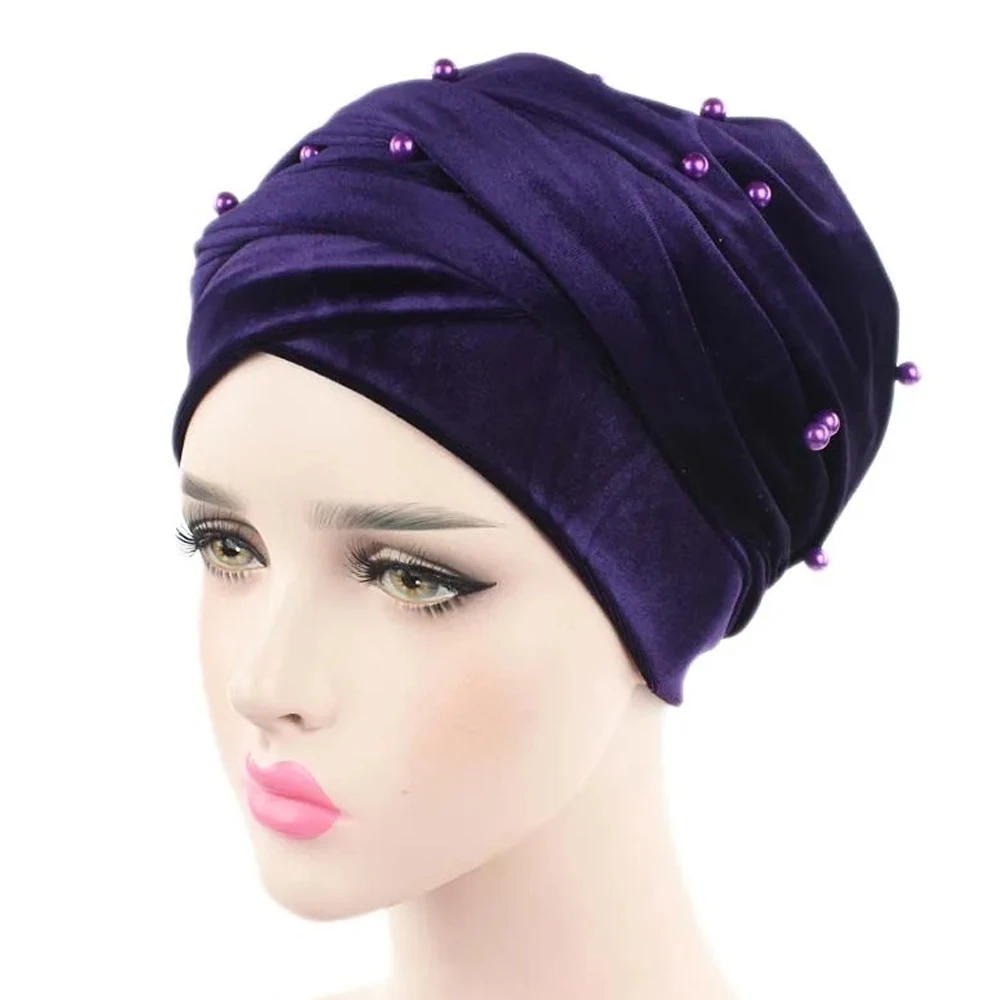 Turban Hijab en Velours Uni pour Femme, Chapeau Musulman à Longue Queue, Foulard Islamique, Bonnet Africain à Tête Ronde, 2022