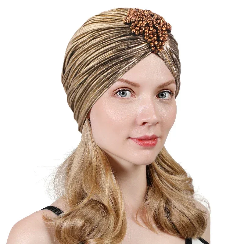 Turban indien pour femmes musulmanes, bonnet hijab perlé brillant, bonnet chimio contre le cancer, perte de cheveux, écharpe de sauna, bonnets à la mode, nouveau