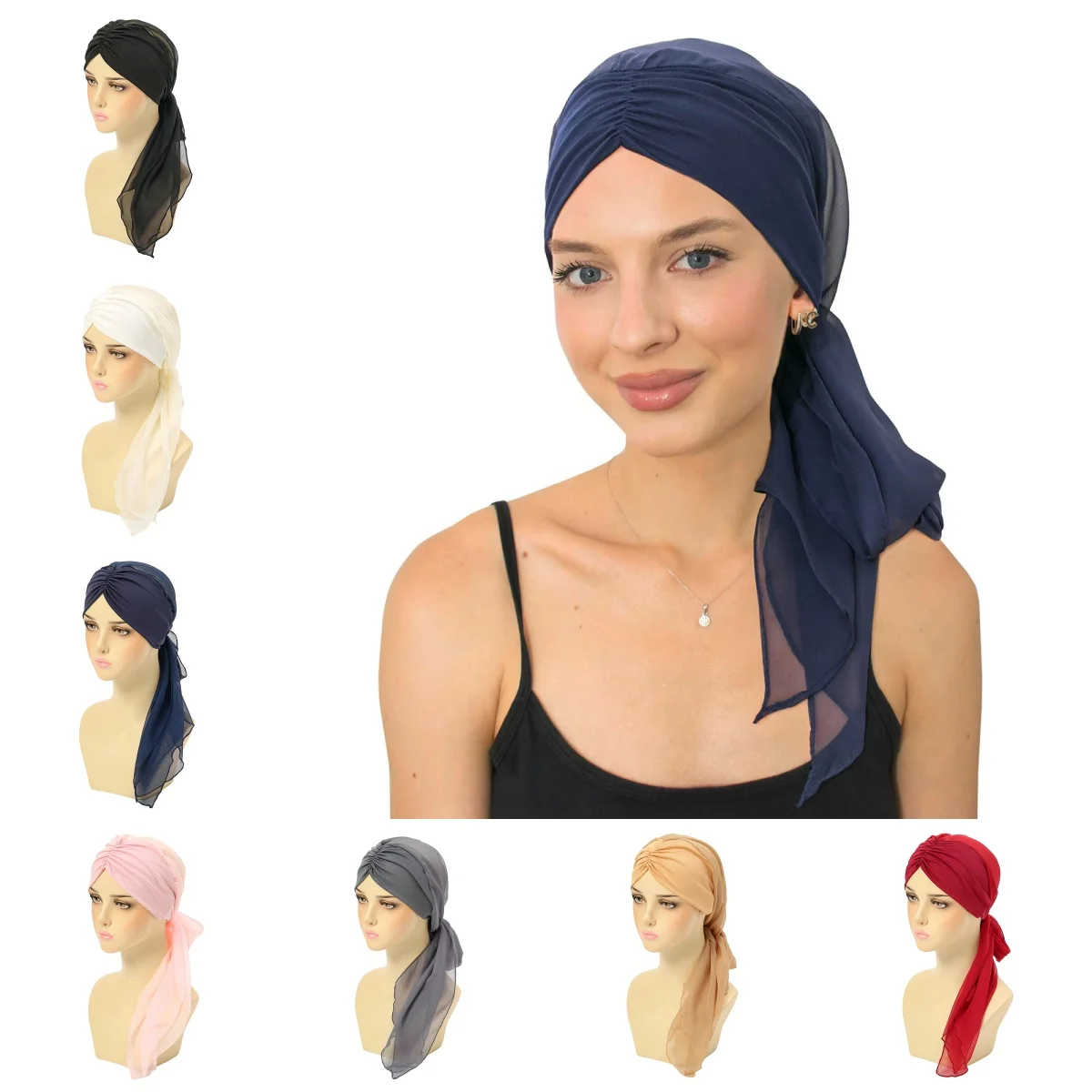 Turban musulman pour femmes, Hijab, chapeau de chimio contre le Cancer, casquette de couleur unie, couverture de perte de cheveux, foulard de tête, Bandana extensible, couvre-chef pré-attaché, nouvelle collection |