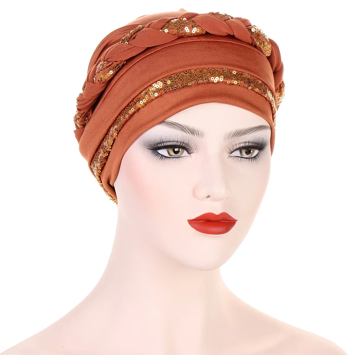Turban Musulman Tressé pour Femme, Hijabs à la Mode, Bonnet Élégant à Paillettes, Écharpe artificiel astique pour la Tête, Couverture de Sauna |