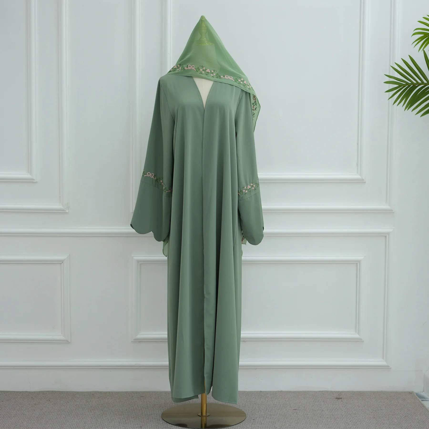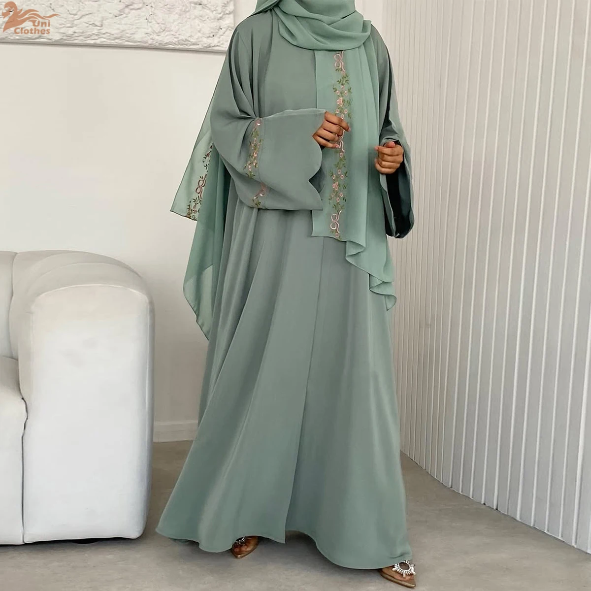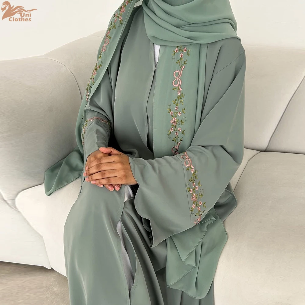 Uni 2025 vêtements pour femmes musulmanes Nida broderie Abaya dubaï Cardigan modeste Abaya robes pour femmes avec Hjiab assorti |