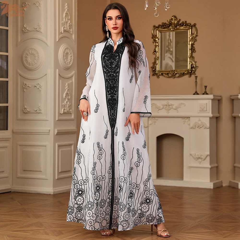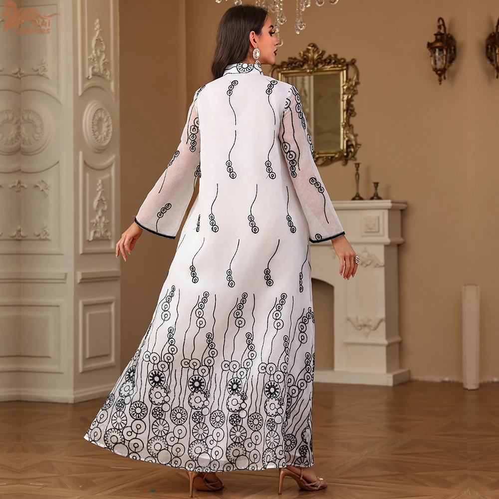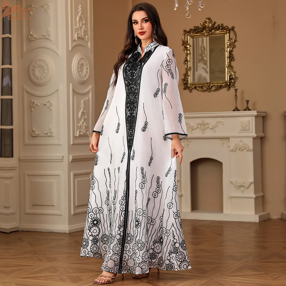 Uni mode caftan Abaya dubaï Islam musulman broderie florale maille manches longues col en v soirée femme robe décontracté Abayas |
