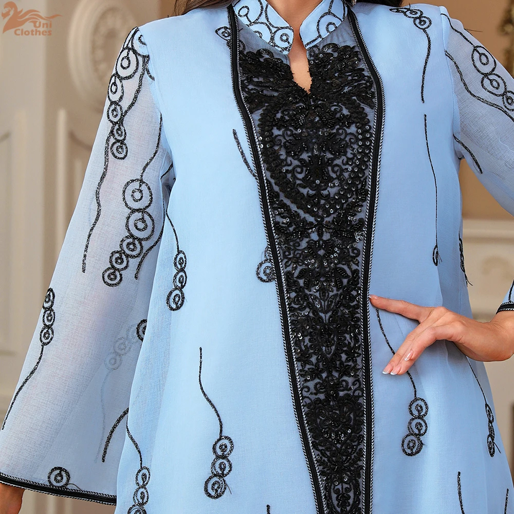 Uni mode caftan Abaya dubaï Islam musulman broderie florale maille manches longues col en v soirée femme robe décontracté Abayas