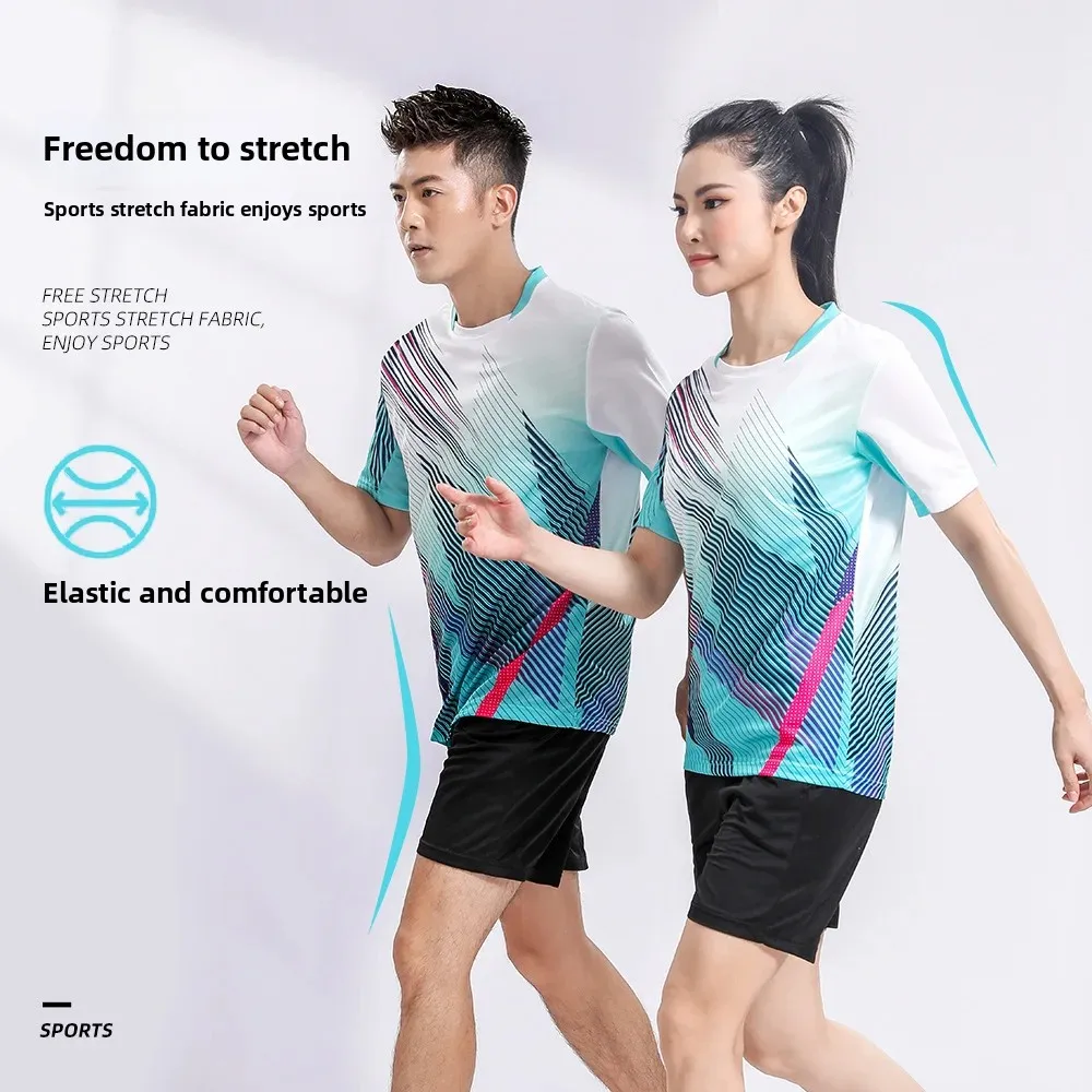 Uniformes d’entraînement de sport d’été pour hommes et femmes, haut de Badminton dégradé bleu pour enfants, manches courtes, respirant, rafraîchissant, Tennis de Table S