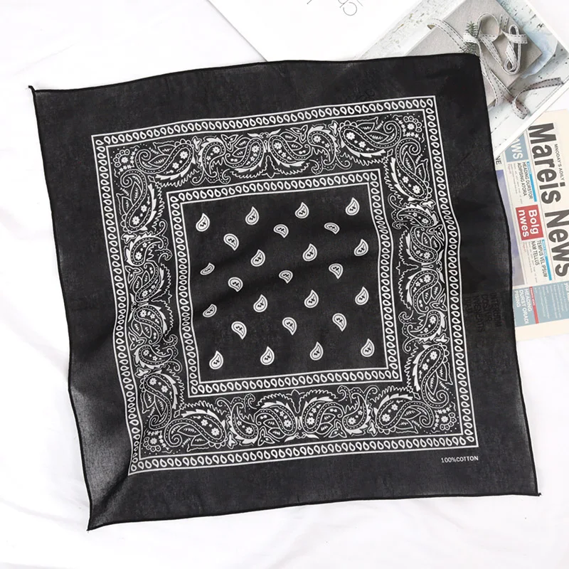 Unisexe Hijab Hommes Femmes Noir Coton Bandana Bandeau Cowboy Biker Sport Chapeaux Poignet Hairwrap Tête Wrap Écharpe Paisley Wraps |