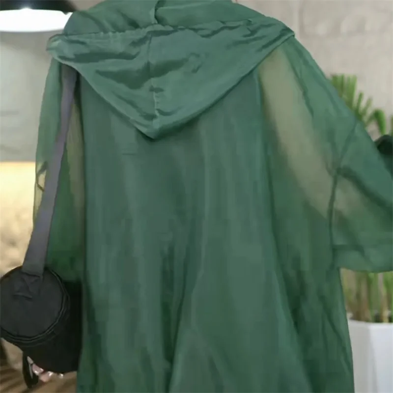 Veste d'été à capuche avec cordon de serrage pour femmes, protection solaire, nouvelle mode décontractée, couleur unie, fine et respirante, manteau de protection solaire ample |