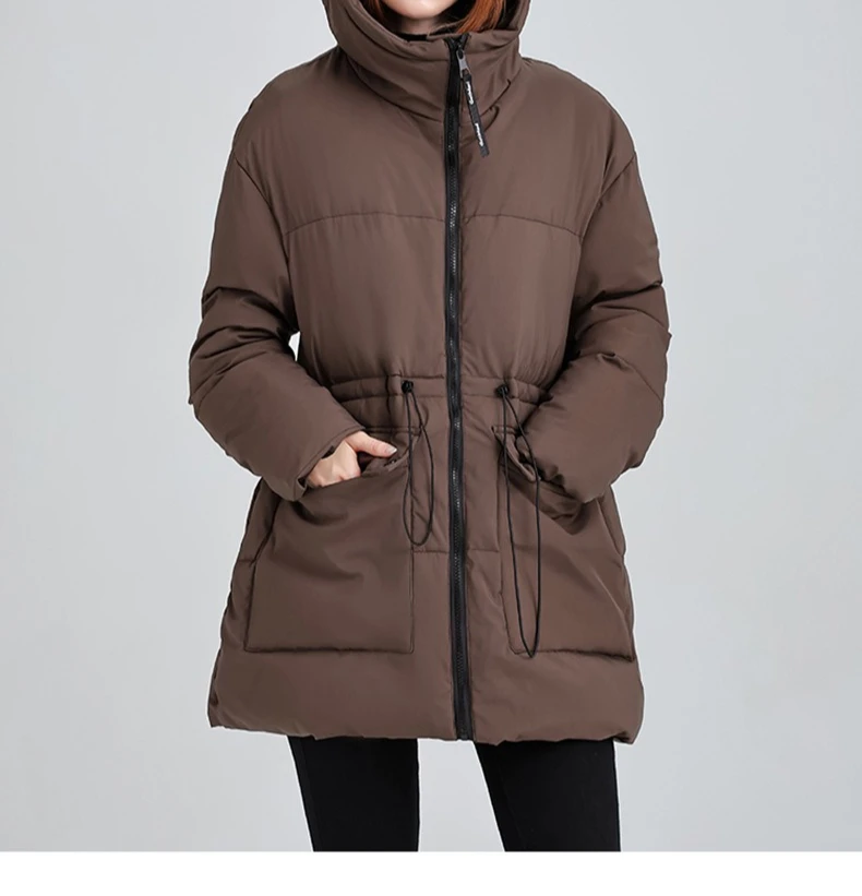 "J'ai été très satisfaite de cette veste en coton à capuche. Elle est vraiment épaisse et chaude, parfaite pour l'hiver. J'aime sa coupe ample et amincissante qui me met en valeur. Bien que la capuche soit un peu grande pour ma tête, cela ne me dérange pas vraiment. La qualité des matériaux est excellente et la veste semble durable. C'est une excellente acquisition pour la saison froide !"