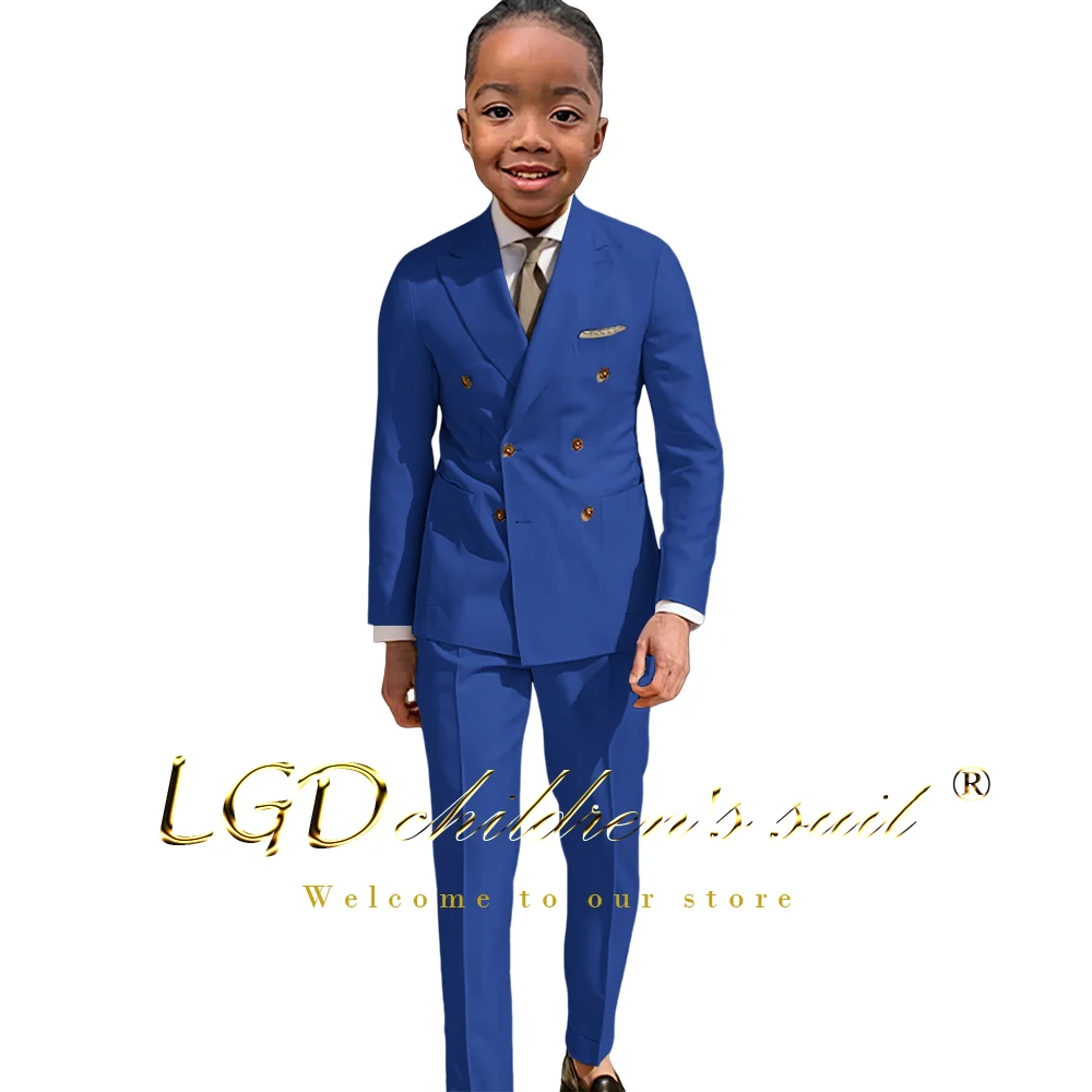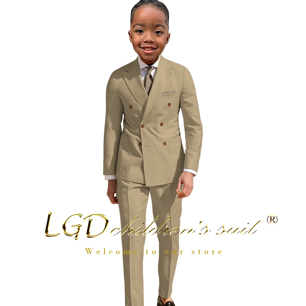 Veste et pantalon à double boutonnage pour garçons, beige, formel, élégant, personnalisé, fête de mariage, vacances, décontracté, 2 pièces