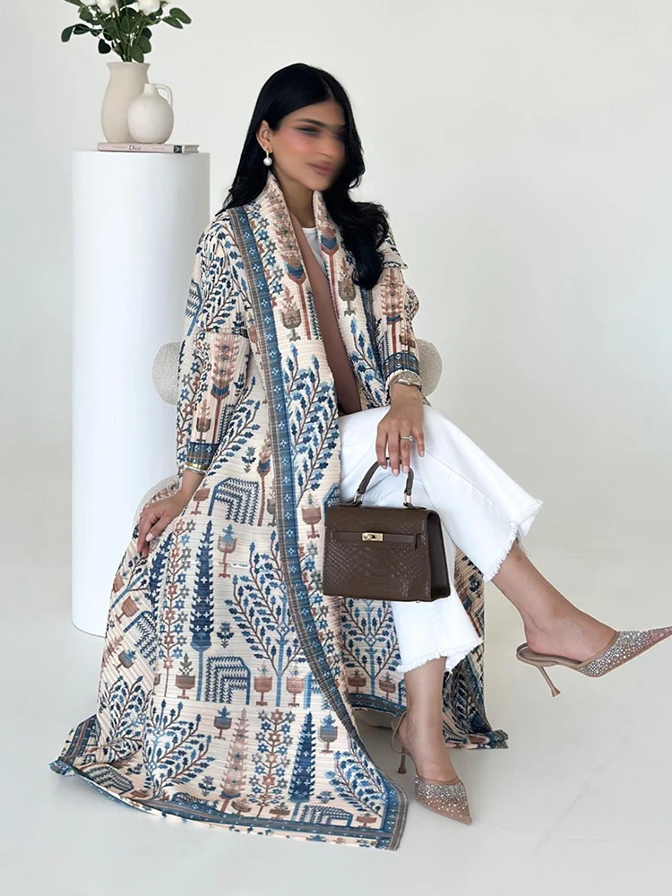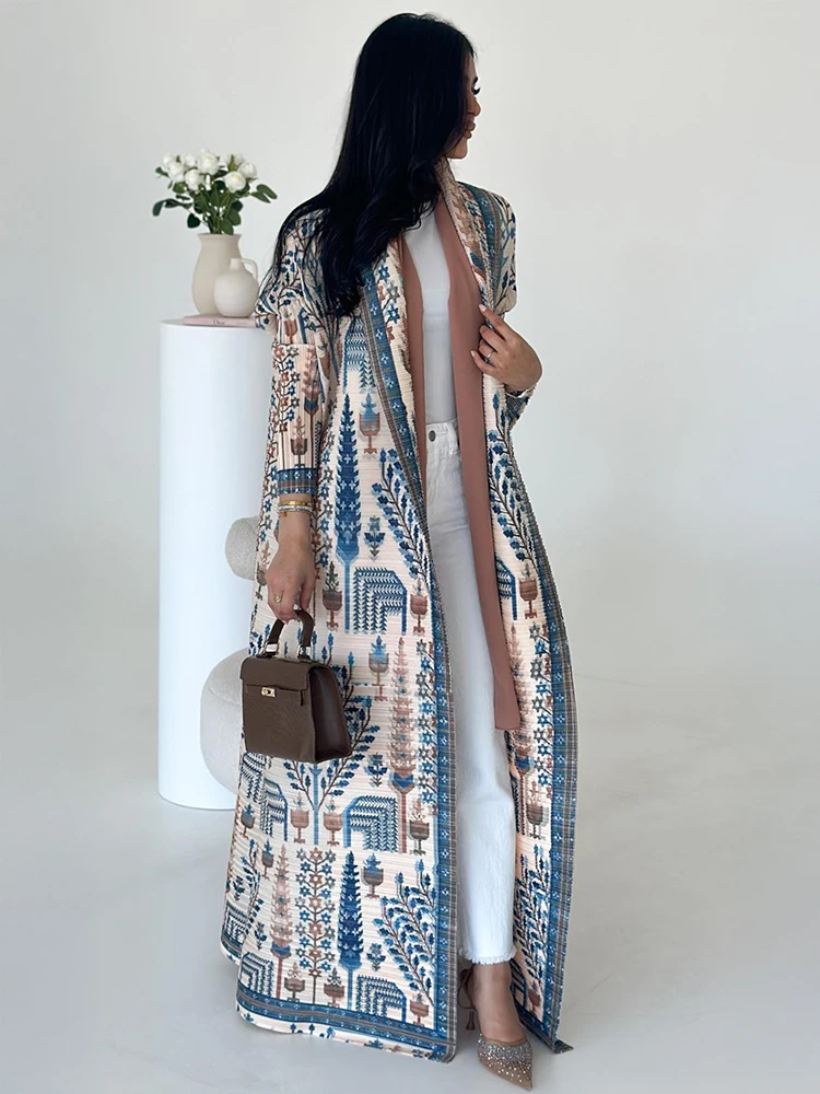 Vêtements arabes femme luxe décontracté Hijab Cardigan pleine longueur à manches longues manteau femmes musulman plissé dubaï ouvert Abaya Eid soirée |