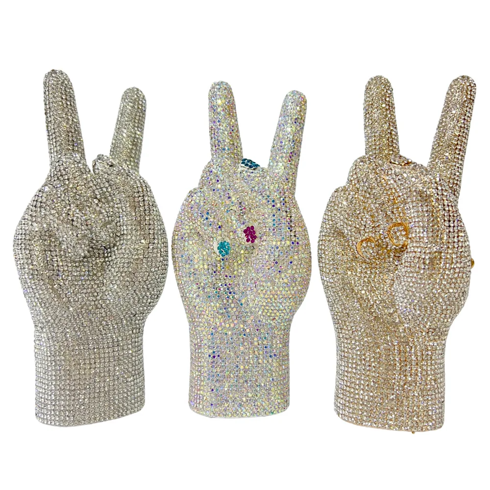 Victory main luxe femmes gemmes soirée pochette de mariage concepteur cristal embrayages strass mariée pochette sac à main |