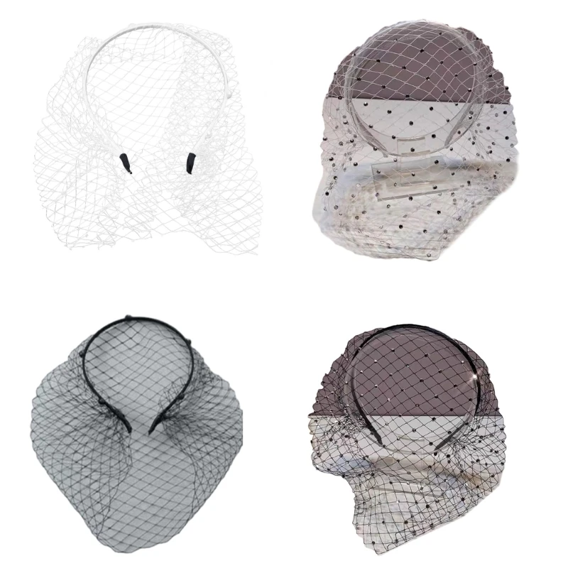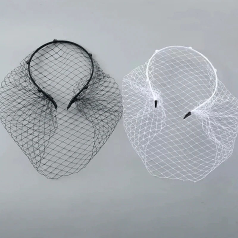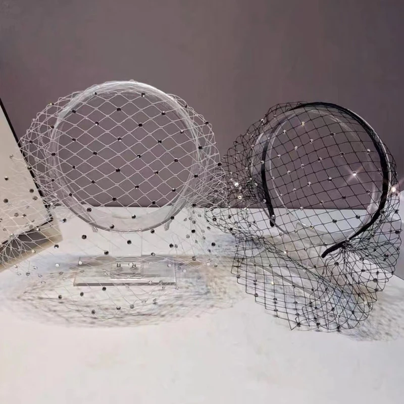 Voile de bande de sauna élégant pour les mariées, masque de filet facial, accessoires de bijoux de cheveux, vêtements de mariage, cage à oiseaux, blanc, noir |