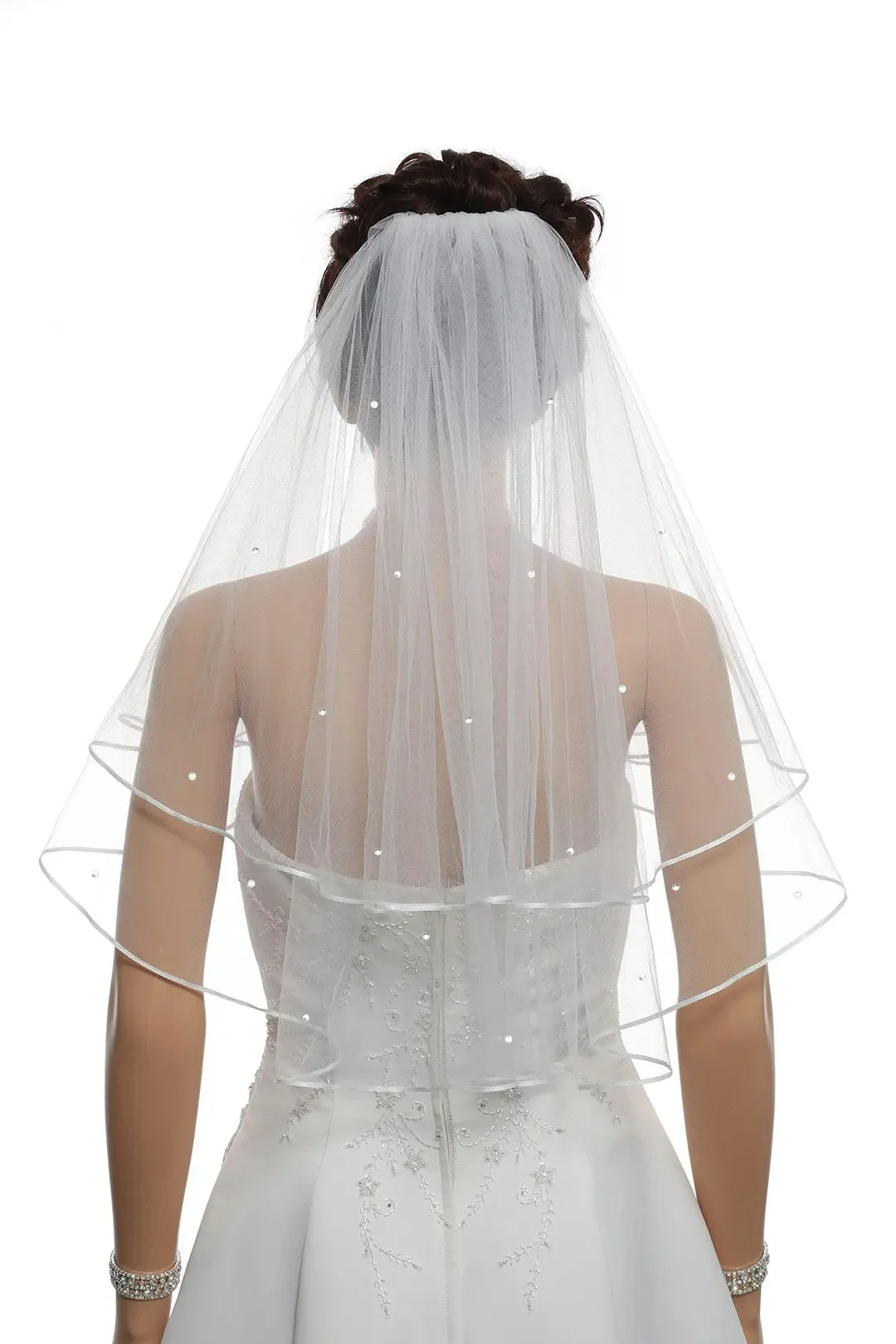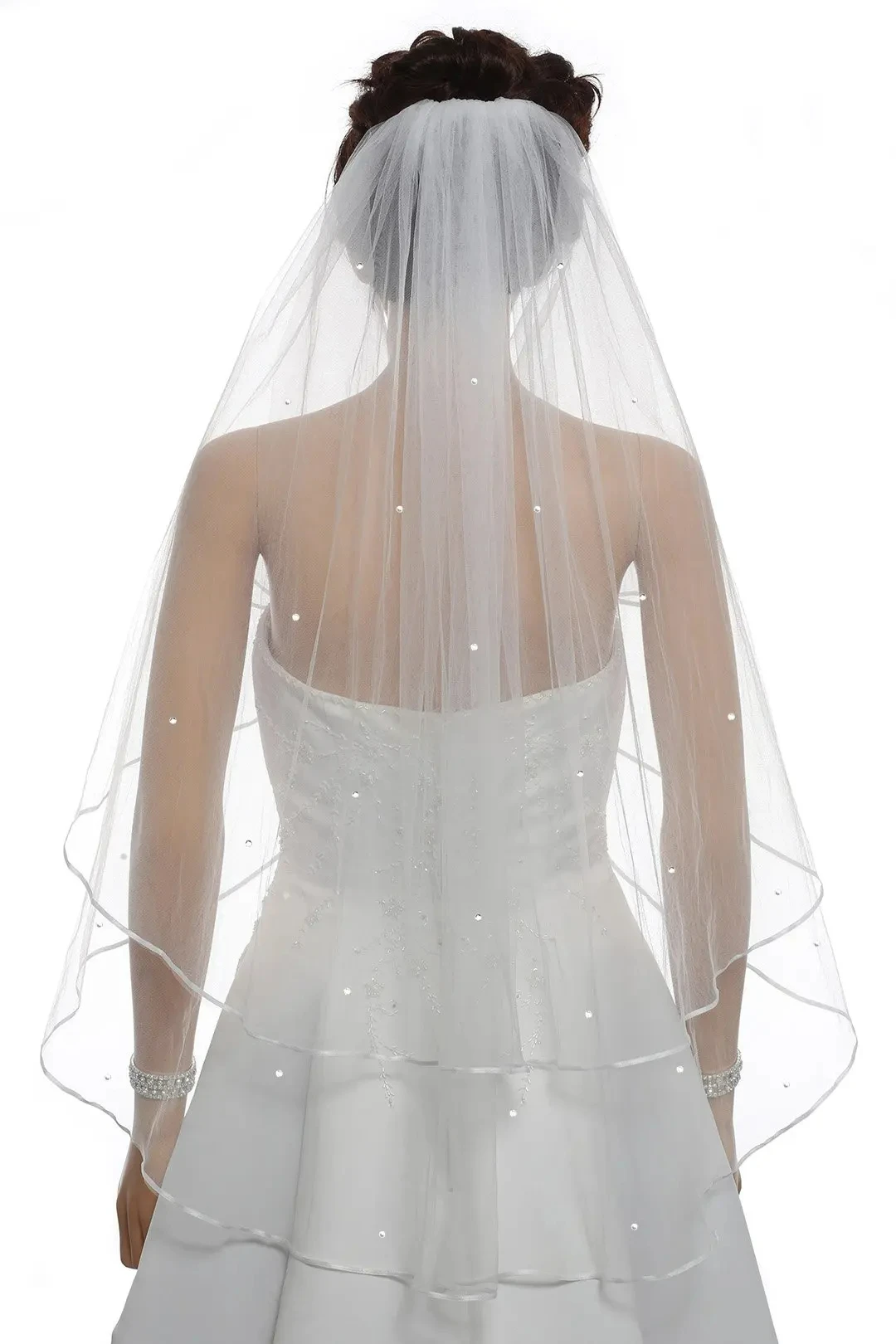 Voile de mariée élégant à deux couches avec perles courtes, blanc ivoire, bord de ruban pour femmes, avec peigne