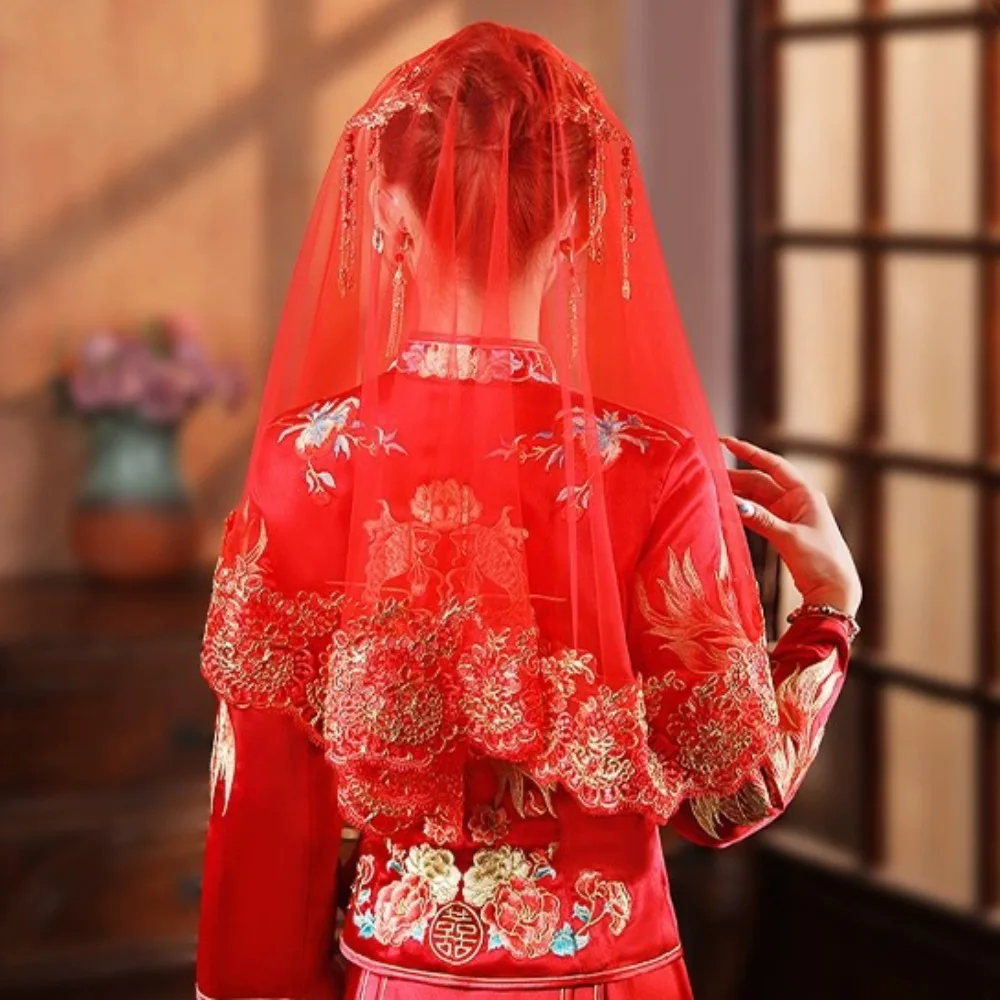 "Ce voile de mariée rouge est tout simplement magnifique ! La gaze rétro lui confère un style élégant et sophistiqué, rehaussé par la belle broderie dorée. Bien que le voile soit court, la dentelle apporte une belle touche de raffinement à l'ensemble. Je l'ai porté lors de mon mariage et je m'y suis sentie comme une véritable princesse. Le seul bémol serait que le voile nécessite un repassage minutieux, mais cela en vaut largement la peine vu le rendu final. Je recommande vivement ce produit aux futures mariées en quête d'un look unique et vintage !"