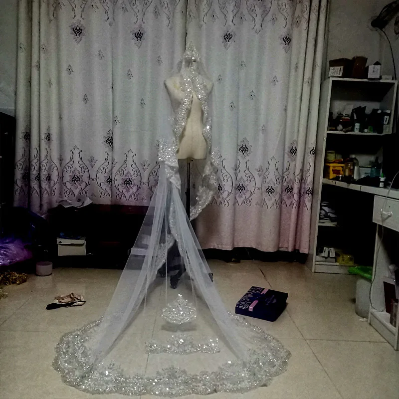 Voile luxueux lumineux brillant diamant, voile brodé entièrement perlé, nouveaux accessoires de mariage cathédrale, voile de mariée sur mesure