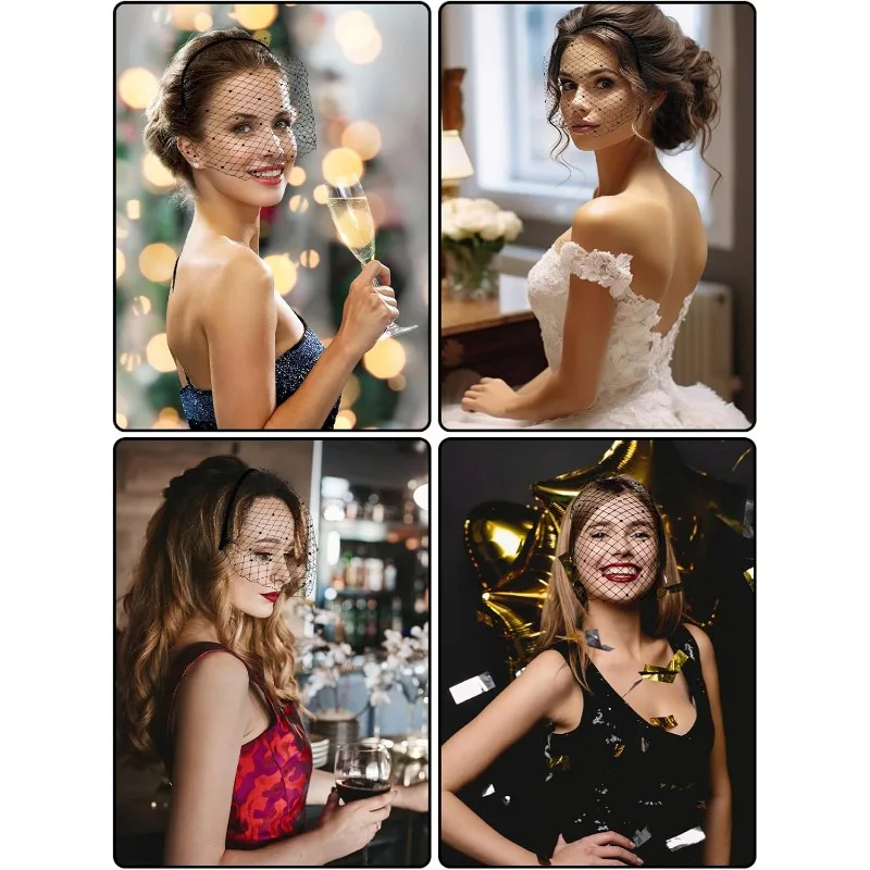 Voile noir maille voile bandeau années 1920 casque cage à oiseaux mariée mariage thé fête fascinateur pour les femmes |