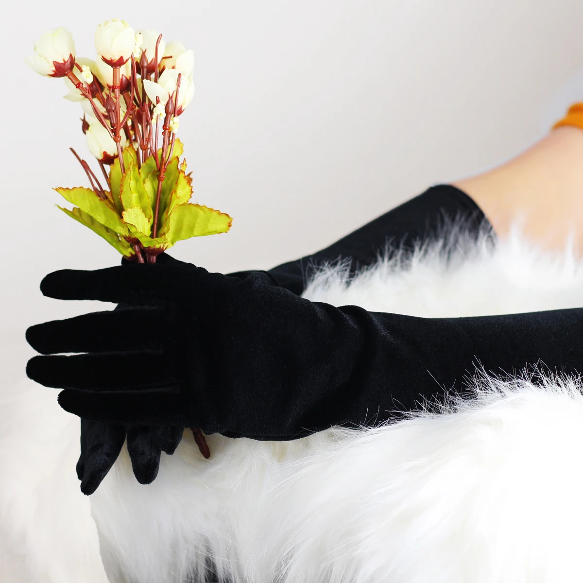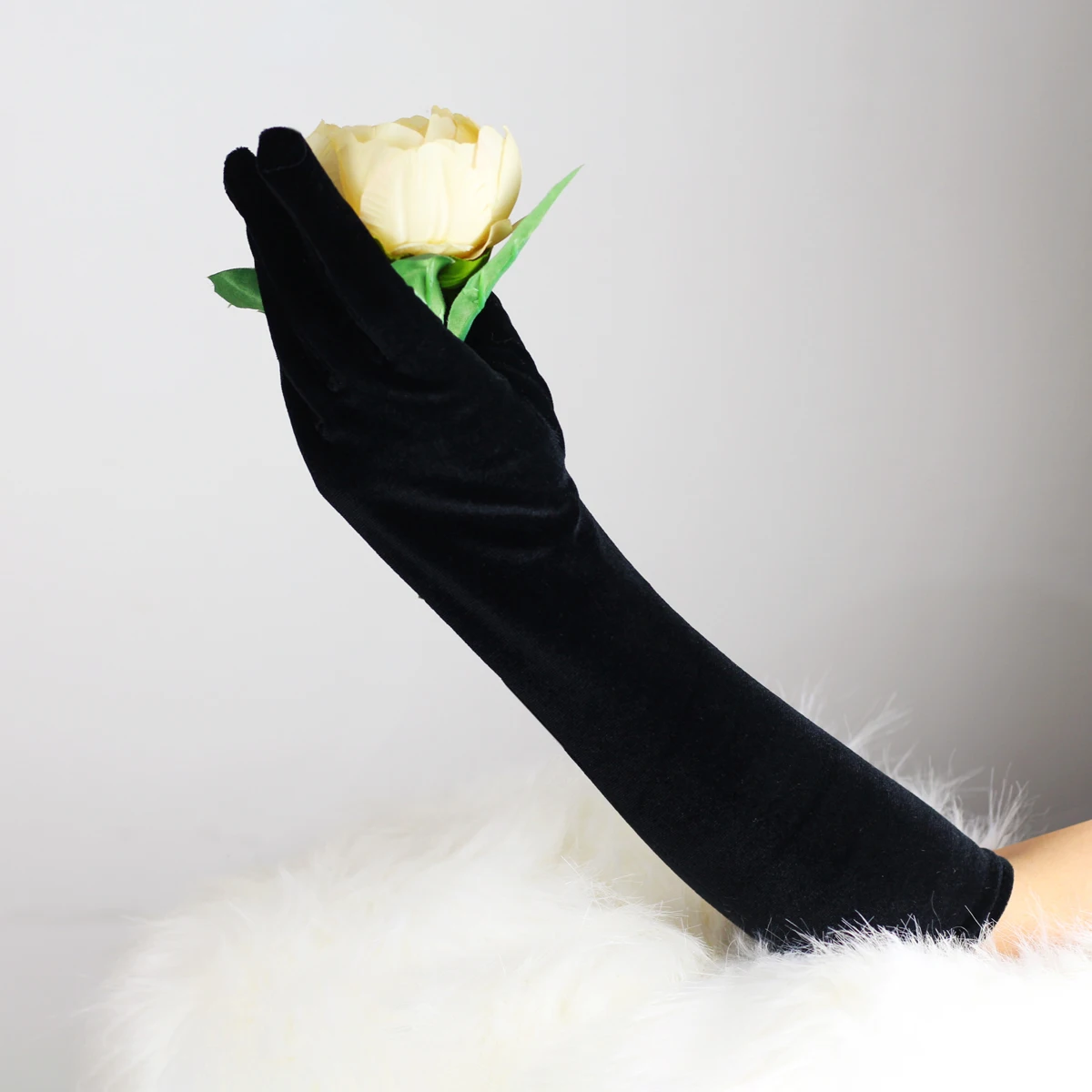 WG011-2 élégant mariage mariée noir longs gants coude longueur velours doigt mariées demoiselle d'honneur gants faits à la main |