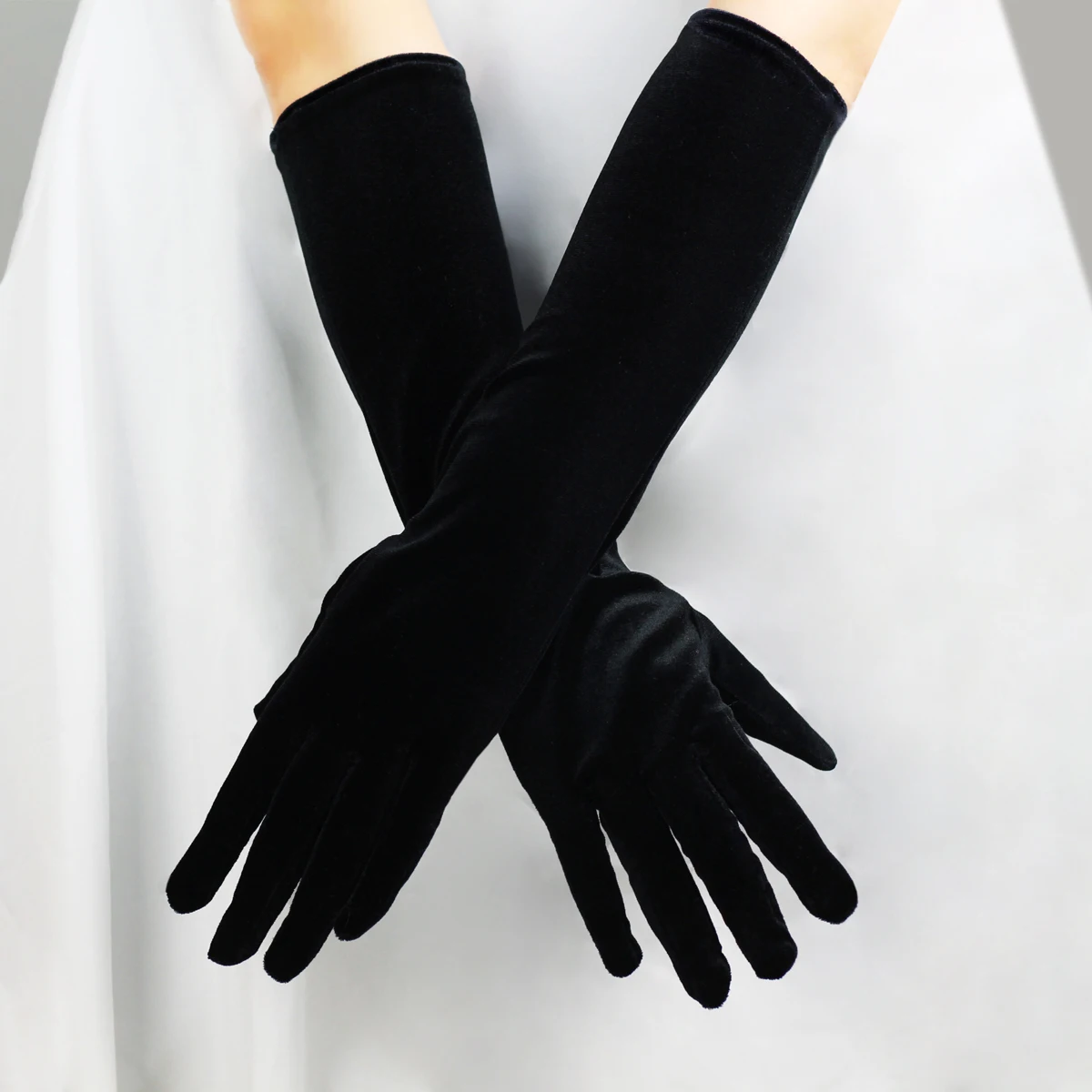 WG011-2 élégant mariage mariée noir longs gants coude longueur velours doigt mariées demoiselle d’honneur gants faits à la main