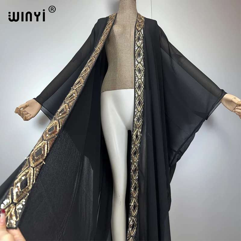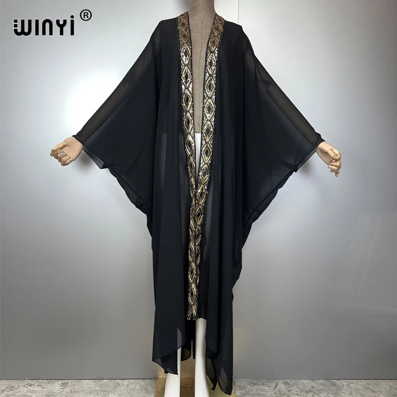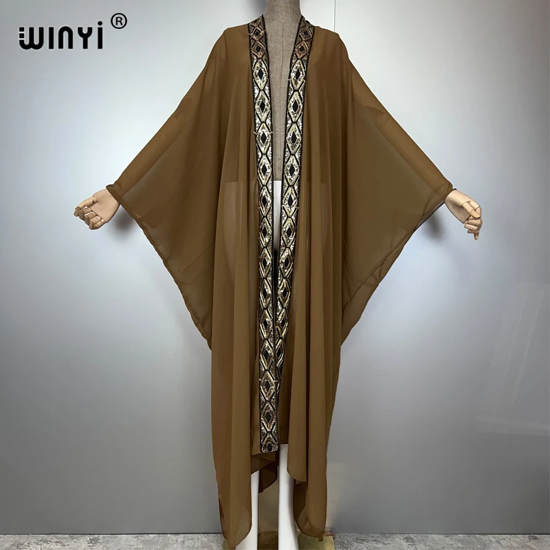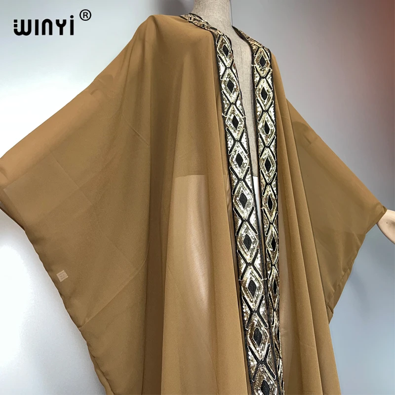 WINYI abaya dubaï luxe kimonos lâche femme musulmane robes Cardigan tenues de plage Caftan plage couvrir robe de soirée maxi manteau