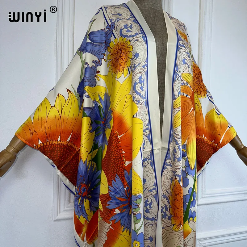 WINYI-Cardigan Kimono Imprimé Bohème pour Femme, Tenues de Plage Maxi Élégantes et Sexy, Robes Caftan, Cover-Up, Vêtements Africains, Abaya |