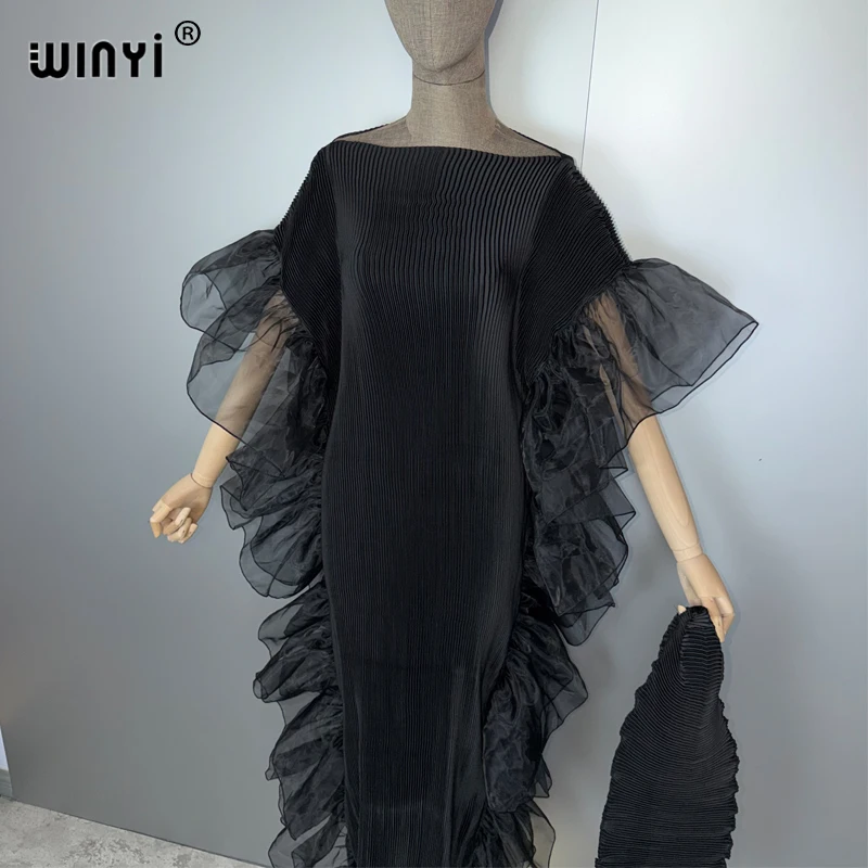 WINYI couleur unie plissée élastique robe mince vêtements de plage caftan abaya dubaï robe de soirée de luxe robe de soirée abaya femme musulmane