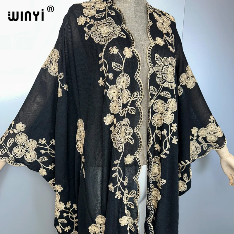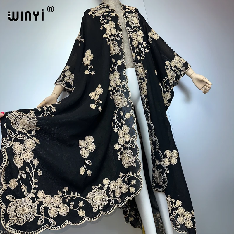 WINYI élégant broderie kimono bohème luxe maillots de bain maillot de bain couvrir femmes Cardigan vacances long manteau abaya dubaï luxe