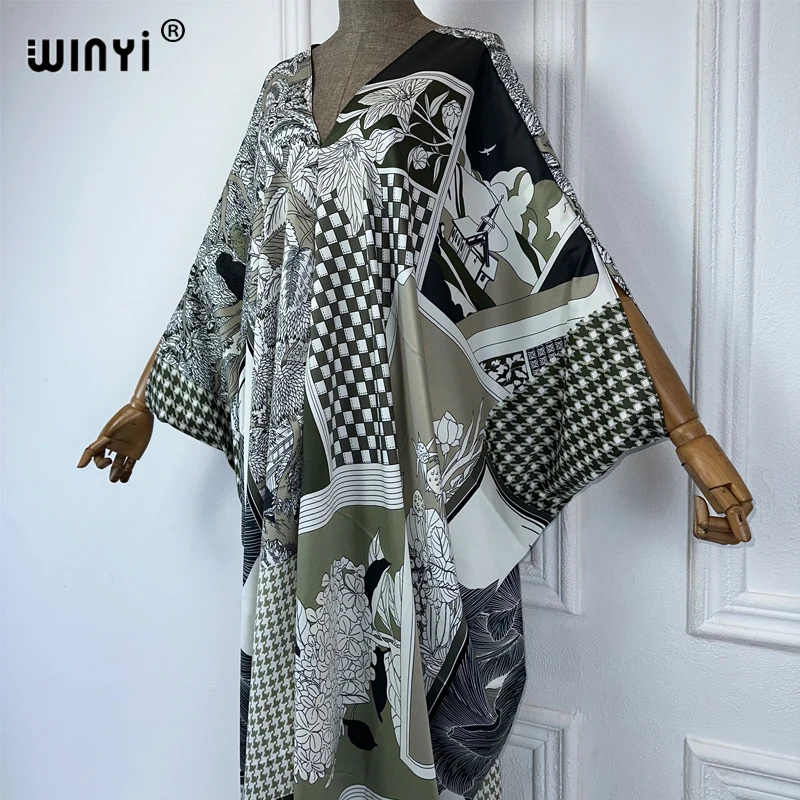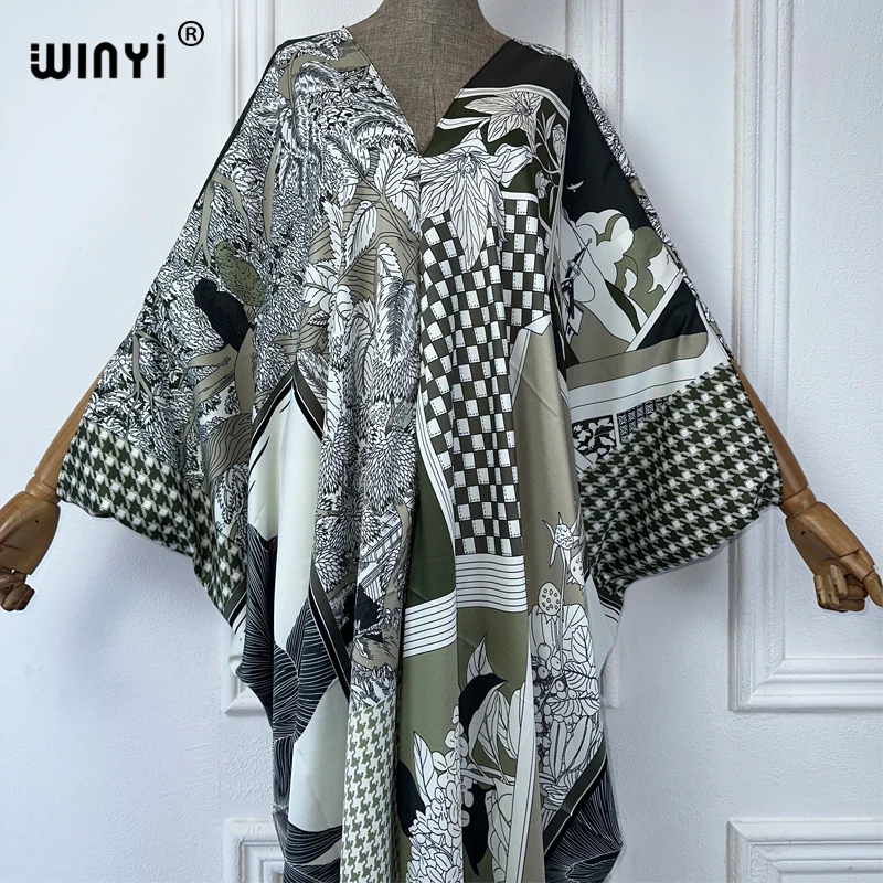 WINYI été caftan koweït femmes imprimer plage couvertures robe abaya dubaï luxe abaya femme musulmane dubaï mode robe de soirée