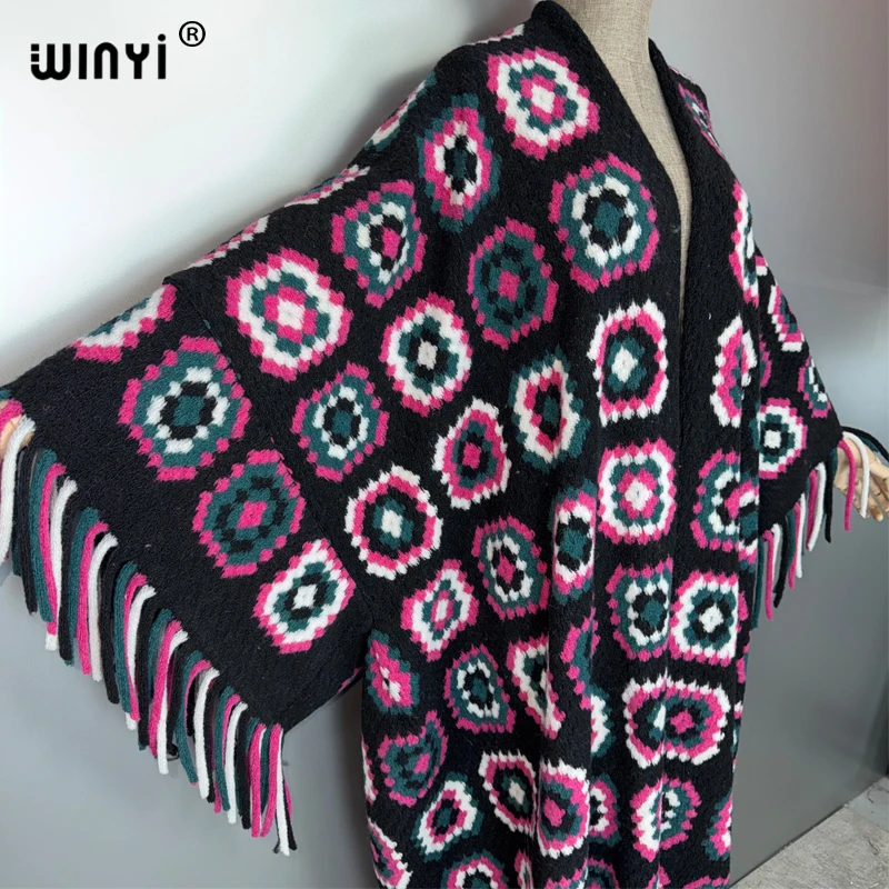 WINYI hiver femmes cardigan à franges abaya dubaï manteau de luxe manteau ample femme vêtements d'extérieur d'hiver longue robe en duvet و |