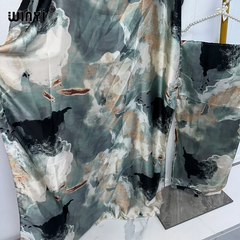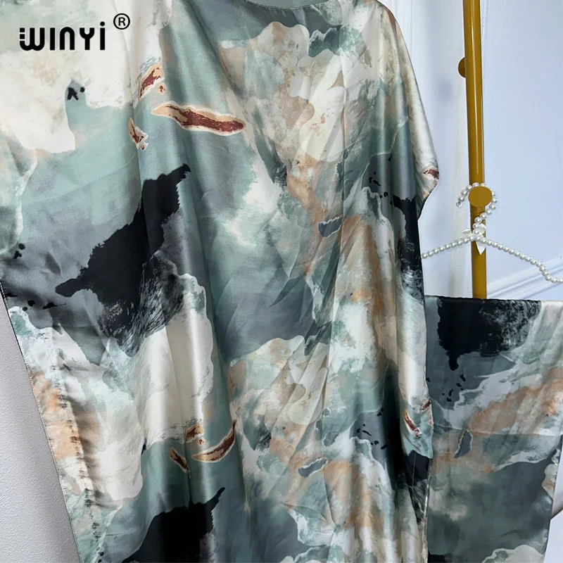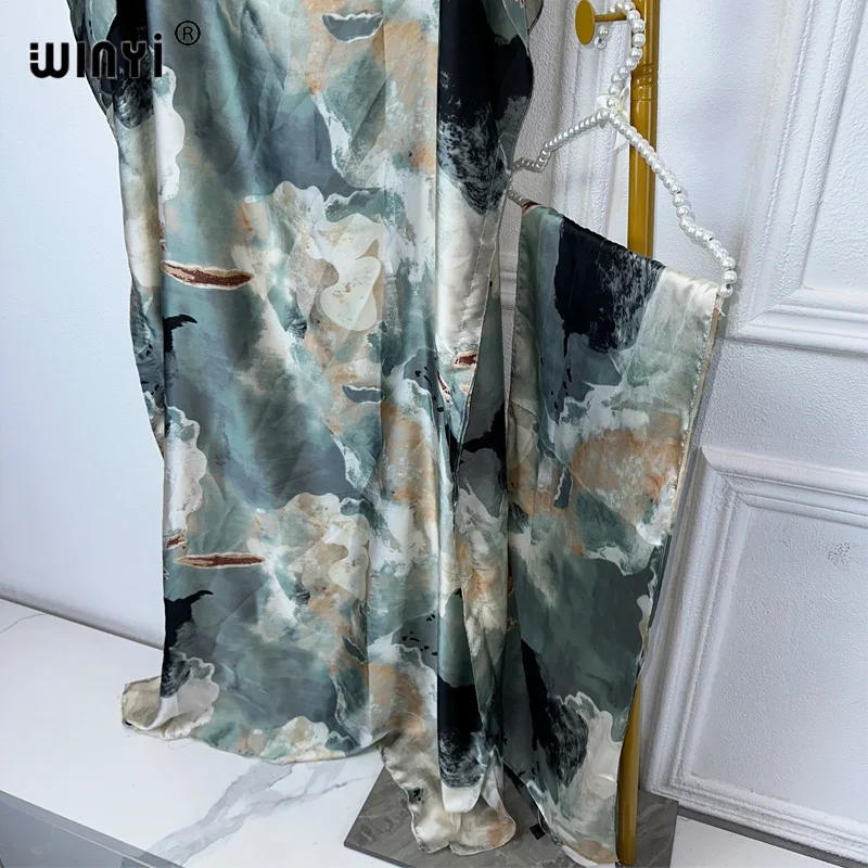 WINYI-Robe musulmane abaya à manches longues et col ras du cou pour femme, kaftan à imprimé abstrait, robe maxi élégante, vêtements pour femmes |