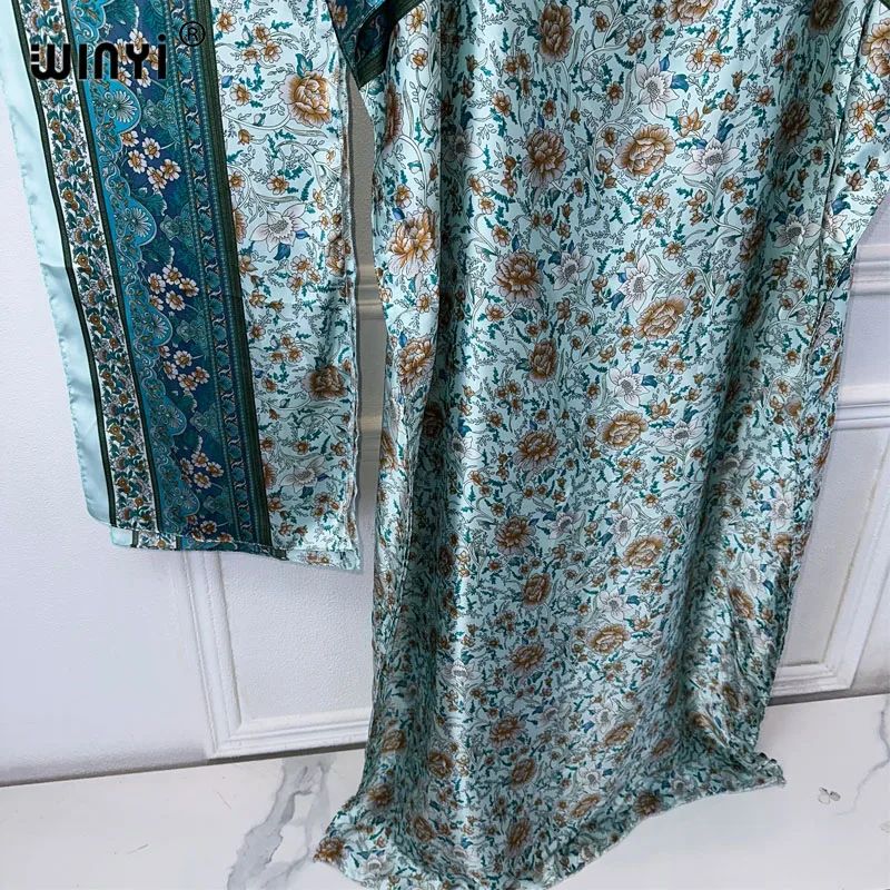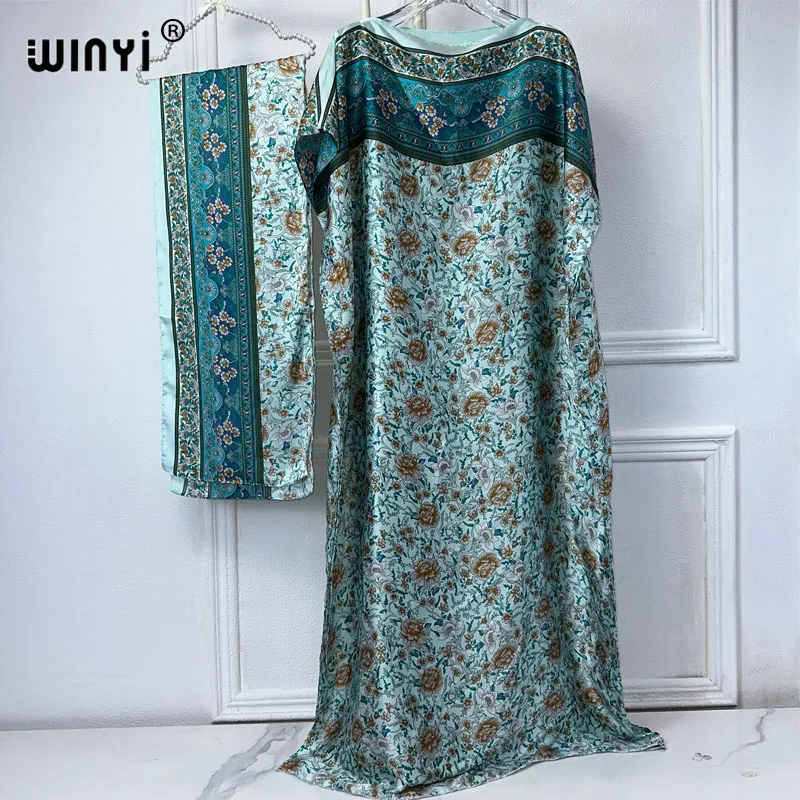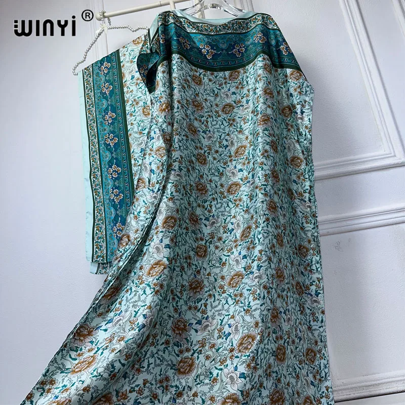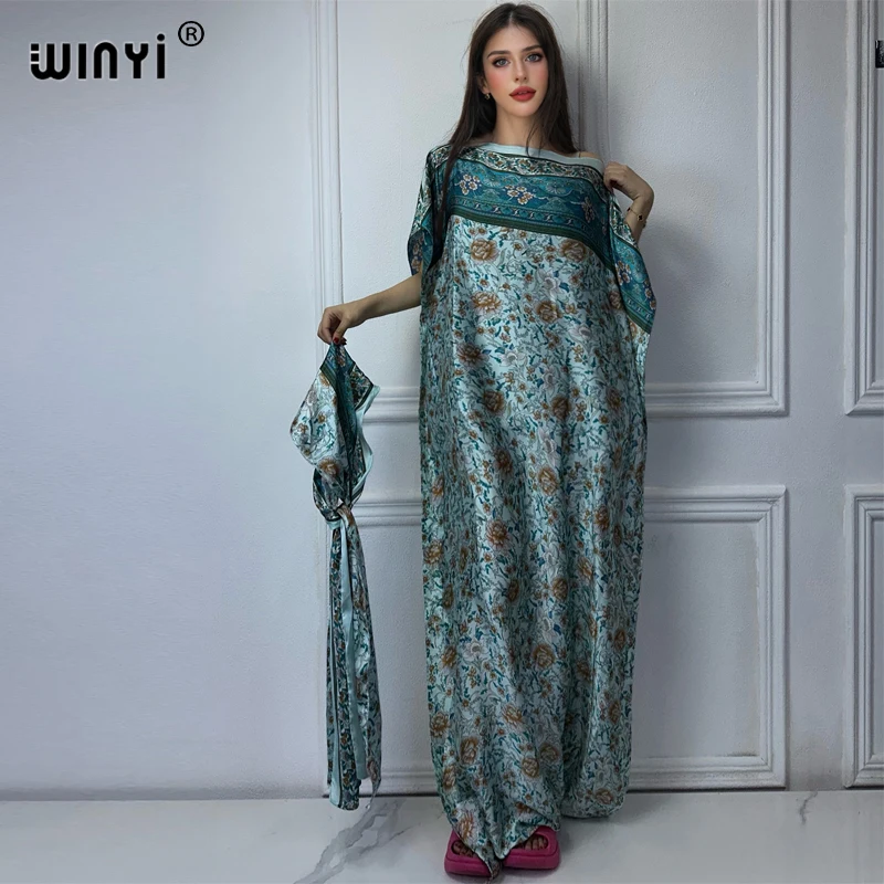 WINYI-Robe musulmane pour femmes, abaya africaine, dubaï, col ras du cou, imprimé, kaftan, élégante, longueur maxi, tenue de plage |