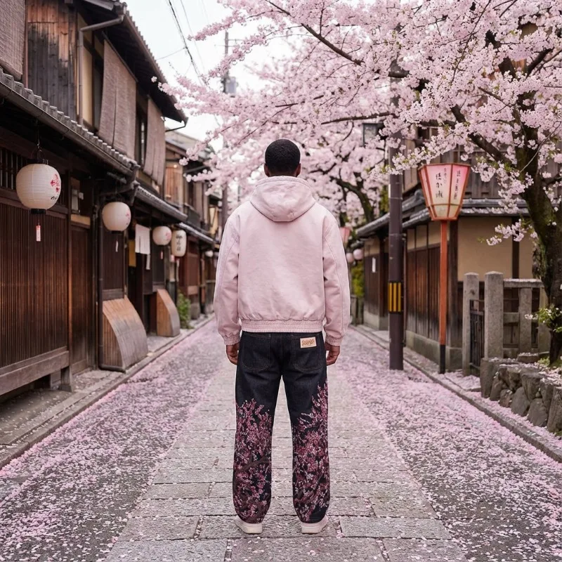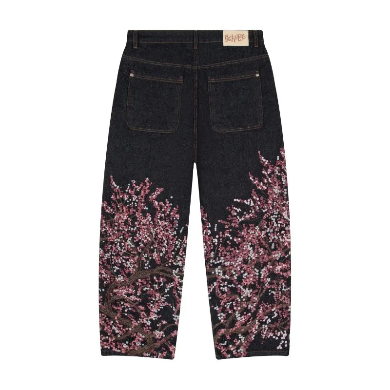- Tendance streetwear vintage Harajuku avec design floral brodé