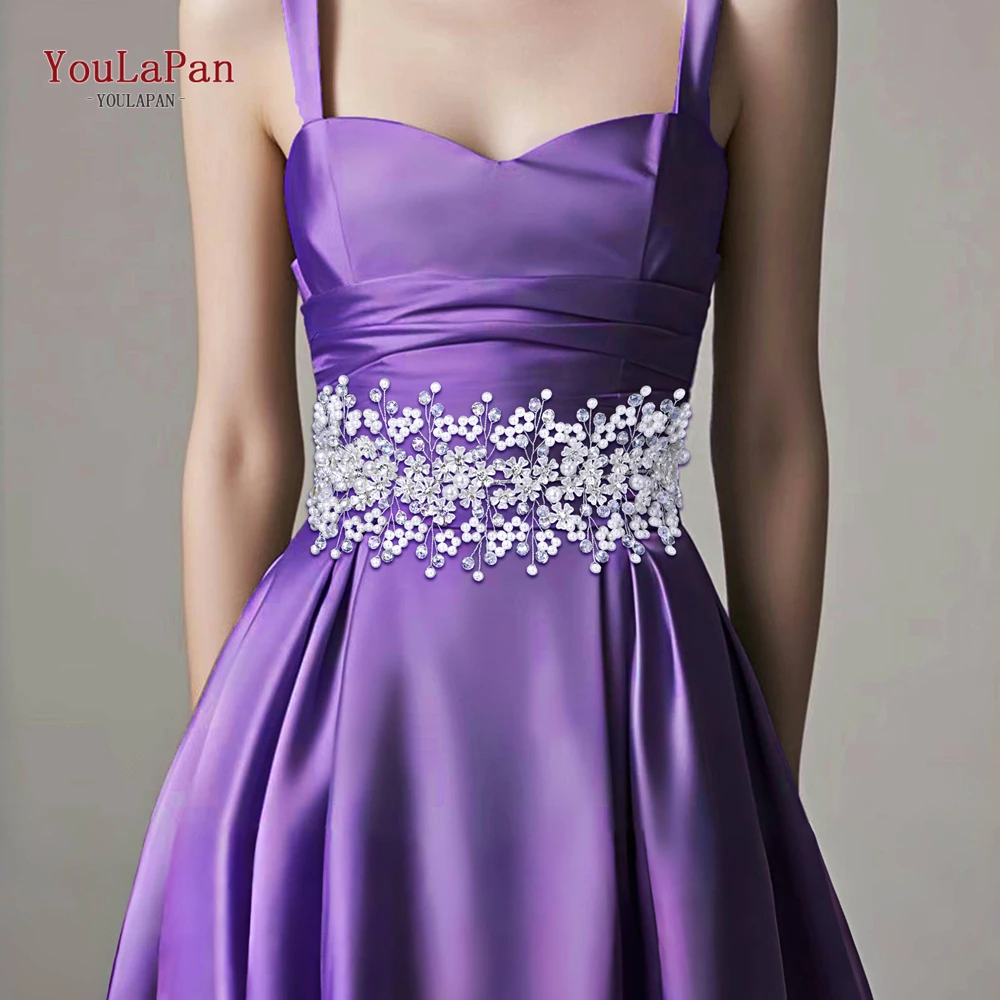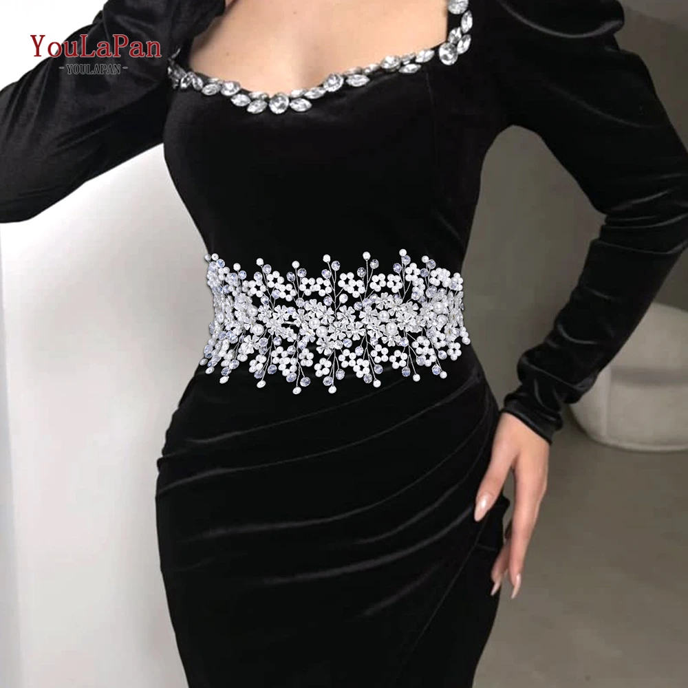 YouLasaupoudrer-Ceinture large en cristal perlé pour femme, ceinture argentée pour document, accessoires de taille pour patients, robe de mariée de luxe, JOWhatever, SH839