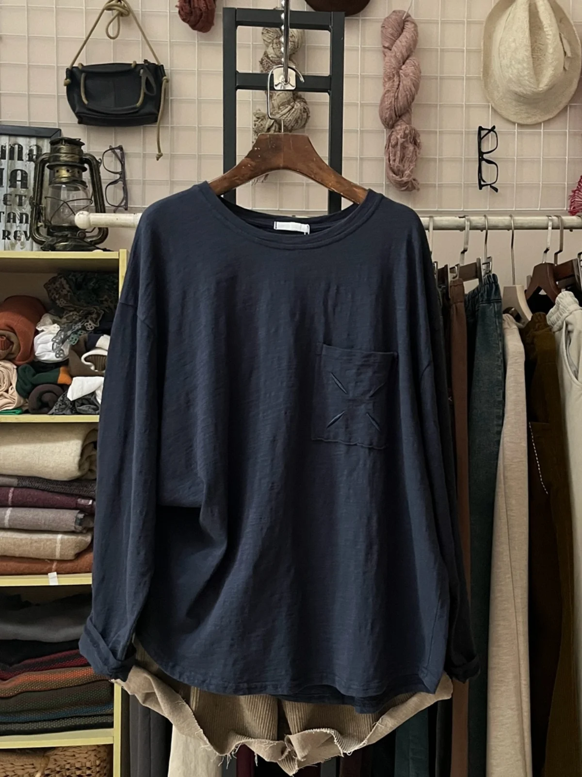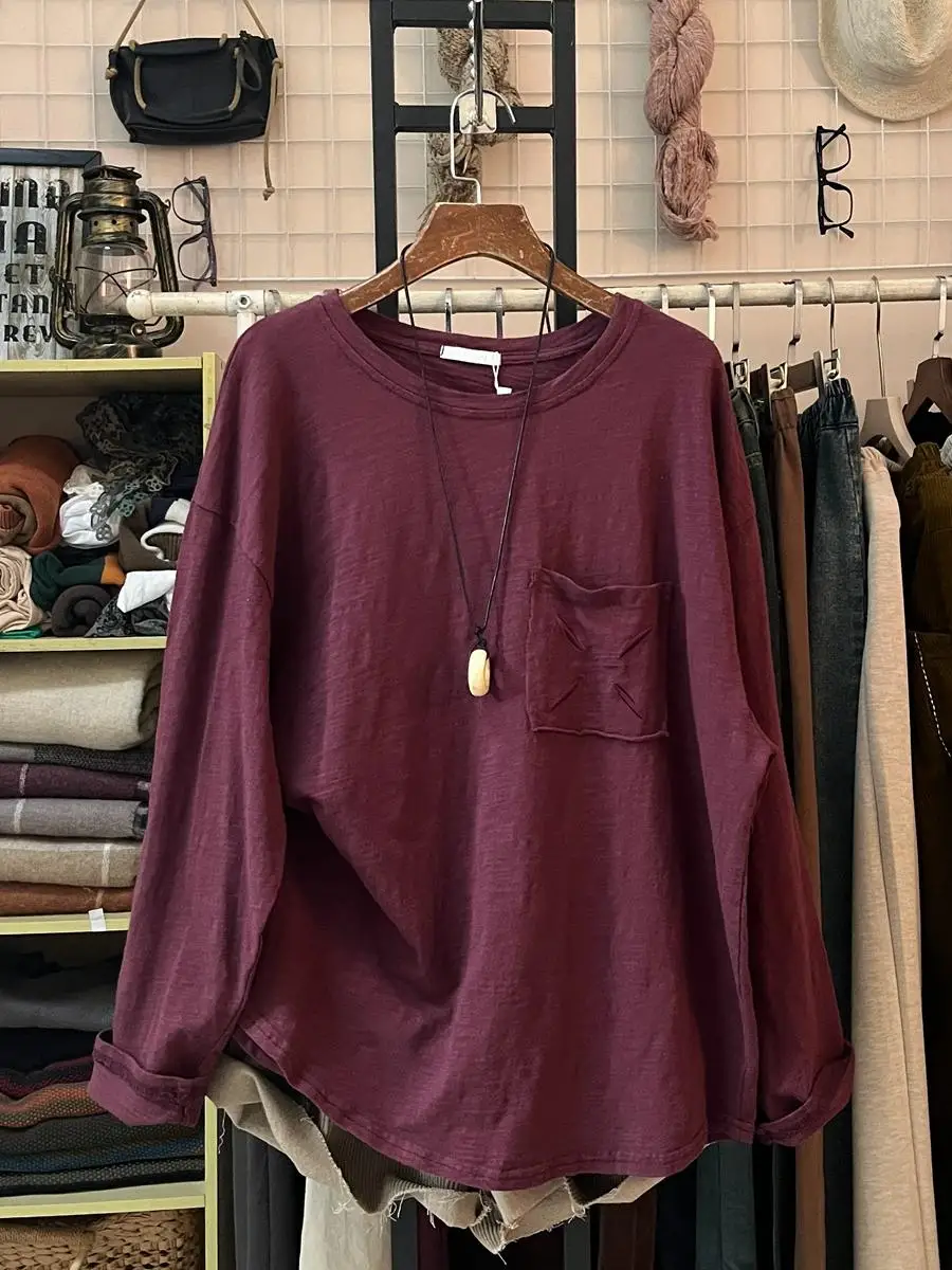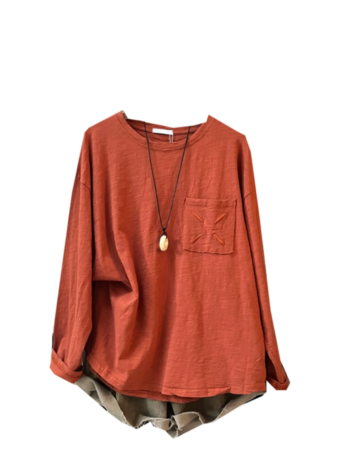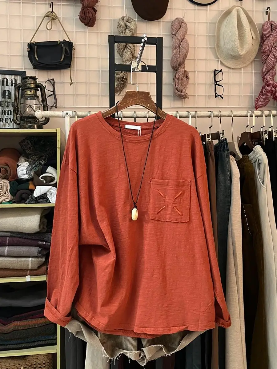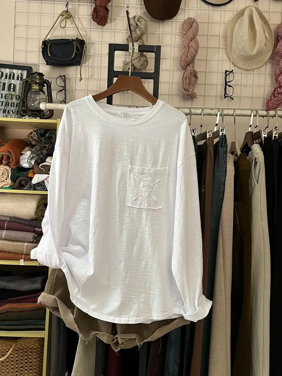 YoYiKamomo-T-shirt col rond femme, en coton bambou, brodé, décontracté, printemps automne, 2025 |
