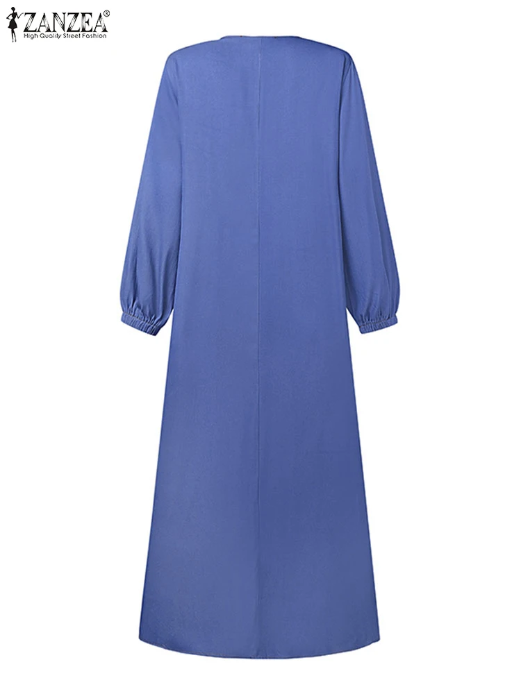ZANZEA-Robe Abaya Musulmane Vintage pour Femme, Tenue d'Automne Décontractée à Manches sulf, Couleur Unie, Maxi Longue, Kaftan Éducatif, Vêtements Islamiques, 2024 |
