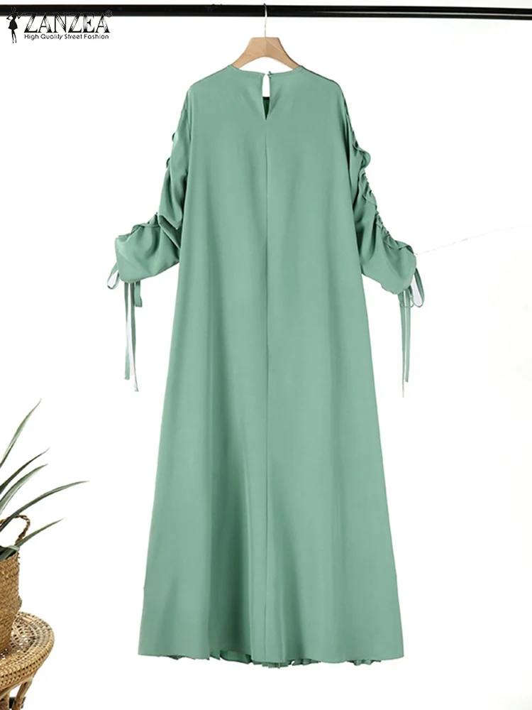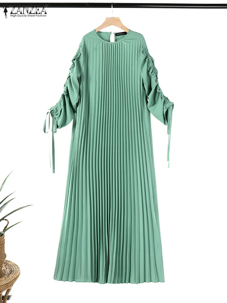 ZANZEA-Robe Longue de Soirée Plissée à Manches sulfpour Femme Musulmane, Hijab, Abaya, Maxi, Mode, Printemps |